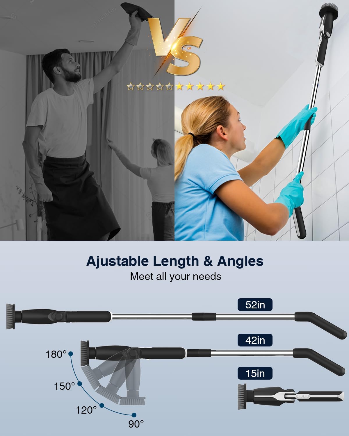 About this itemn?????2024 Upgraded Electric Spin Scrubber?Struggle with those stubborn stains, soap scum, and grout that are hard to clean in your Bathroom? Don’t worry, Leebein 2024 upgraded electric spin scrubber specializes in deep cleaning of mold & dirt in the shower & bathroom, especially for bathtubs, sinks, tiles, and grout, as well as for floors, walls, kitchen, and glass.n???Remote Control Cleaning Brush ?The one and only remote control cordless cleaning brush in the market, allows you to adjust the speed or turn the machine on/off without bending or kneeling, saving your knees and back. Besides, you can also control the machine with the controller on the short handle.n???Two Spin Mode and 4 Adjustable Angles?Leebein YMG-820 spin scrubber has two 2 adjustable spin speeds(350RPM/450RMP) 4 adjustable angles (90°, 120°,150, 180°), which makes it perfect for tackling tough cleaning tasks in your bathroom, bathtub, stone tile floors, grout, grooves, and toilets.n???One Charge to Clean the Whole House?Adapted upgraded 2500mAh*2 battery and USB-C fast charge tech, Leebein electric bathroom scrubber fully charges in 2.5 hours which lasts 60-90 min, far enough to clean your entire house. Besides, you can check the remaining battery by the LED light on the machine.n???Durable Bristles, Anti-Scratch Brush Heads?Leebein YMG-820 electric spin scrubber includes 8 durable and recoverable brush heads for various scenarios. Dome brush for the tub; Flat brush for surfaces like tile floor, wall, and pool; corner brush is great for cleaning grout, faucets, and edges; cloth brush for wooden floor and furniture cleaning; sponge pad is for the window. A tip: please sprinkle hot water on the bristle if it gets bent, and it will be recovered.n???Excellent Quality, 2-Year Extended Protection Plan?We choose high-end materials and high-quality internal components to ensure our products have a long service life. We provide a 90-day worry-free refund and a 2-Year extended protection plan. Please don’t hesitate to contact Leebein support team if you encounter any problems.