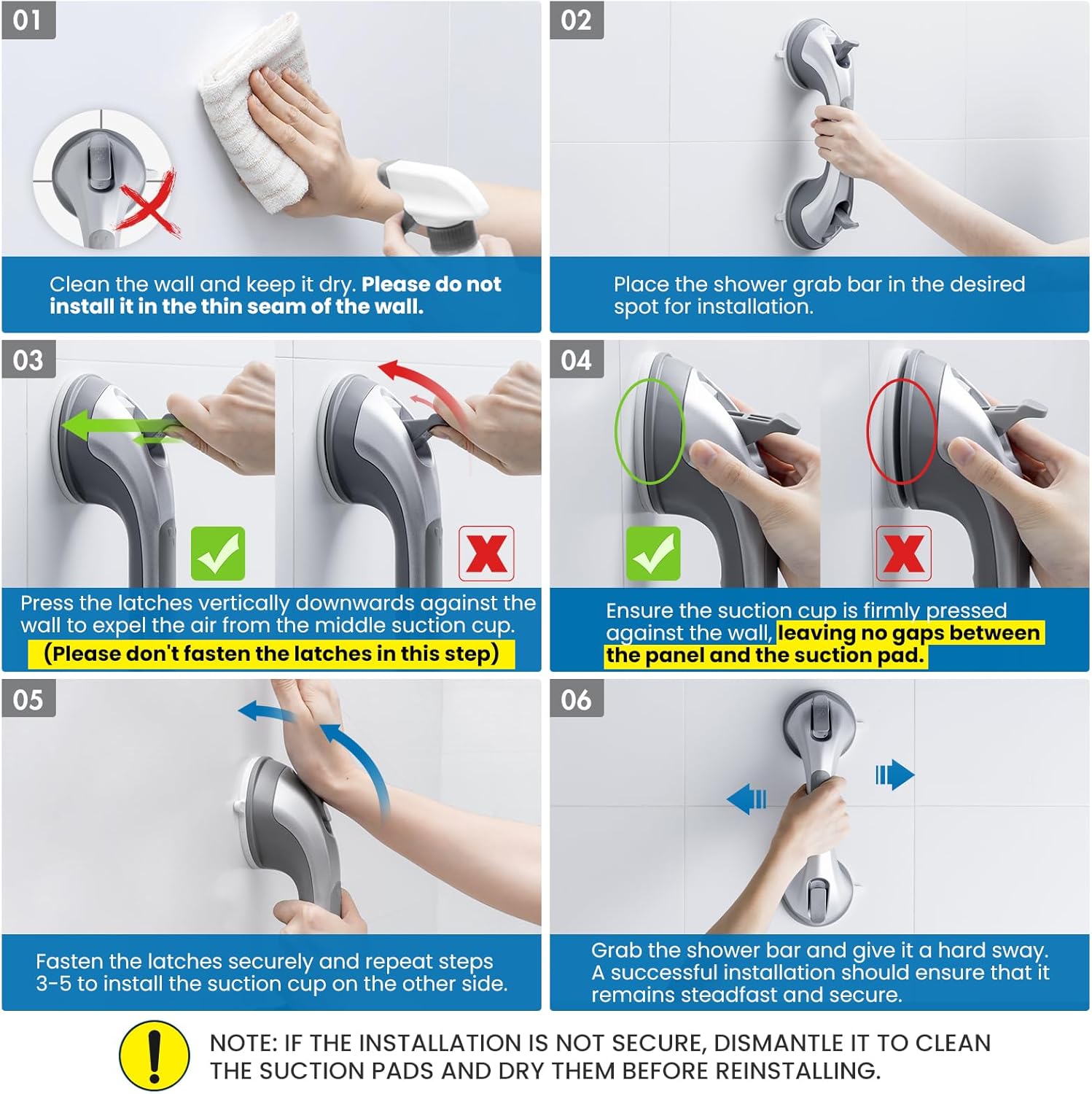 About this itemnBuying Guides: For the safety of people need to use grab bar, please read this before you buy: (1) The Shower Grab Bar is used ONLY as a BALANCE ASSISTANCE – DO NOT USE IT TO SUPPORT YOUR BODY WEIGHT (2) The Suction Grab Bar measures 12 inches long EACH, Only works on tile size LARGER THAN 4×4