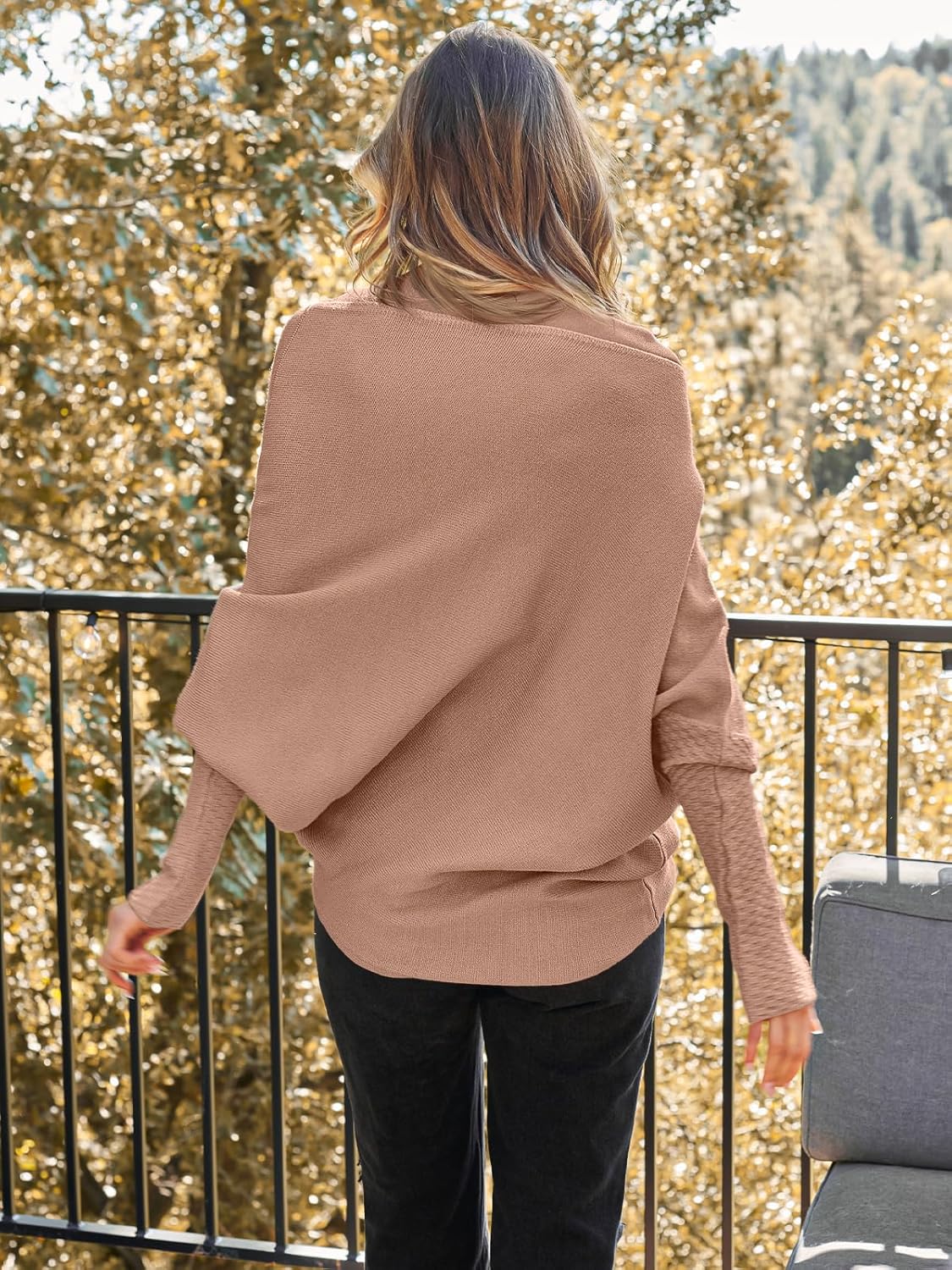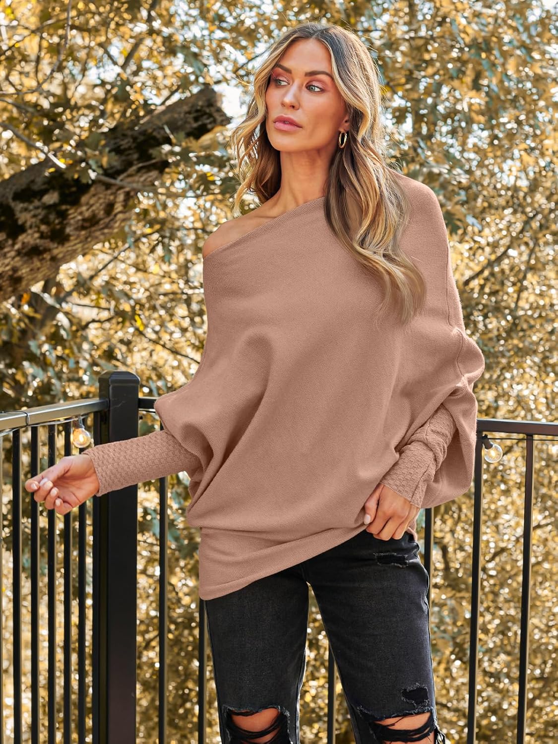 LILLUSORY Womens Batwing Oversized Sweaters Assymetrical Boat Neck Wrap Tunic Tops Fall Fashion Cloth Outfit