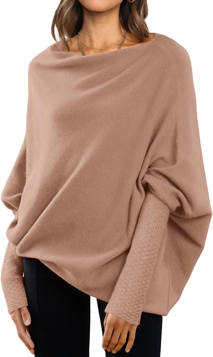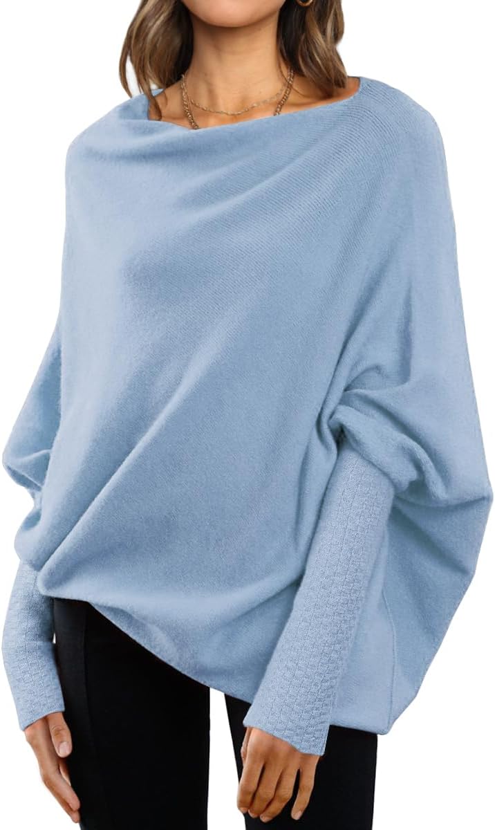 LILLUSORY Womens Batwing Oversized Sweaters Assymetrical Boat Neck Wrap Tunic Tops Fall Fashion Cloth Outfit