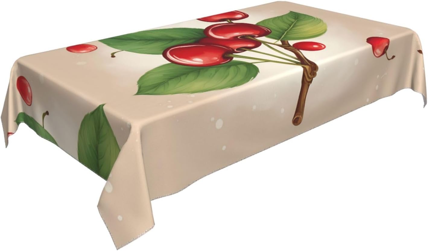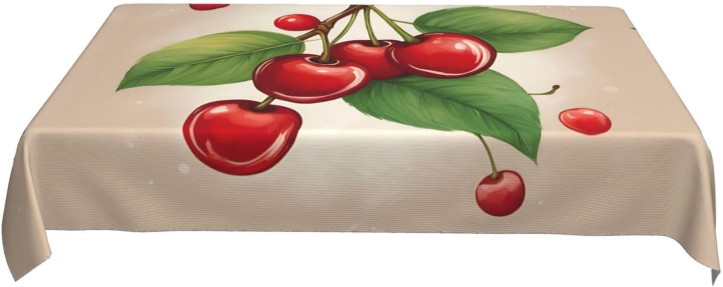 Lovely Sweet Red Cherry 1 Print Rectangular Tablecloth Peach Skin Velvet Table Cover for Indoor/Outdoor Dining Kitchen
