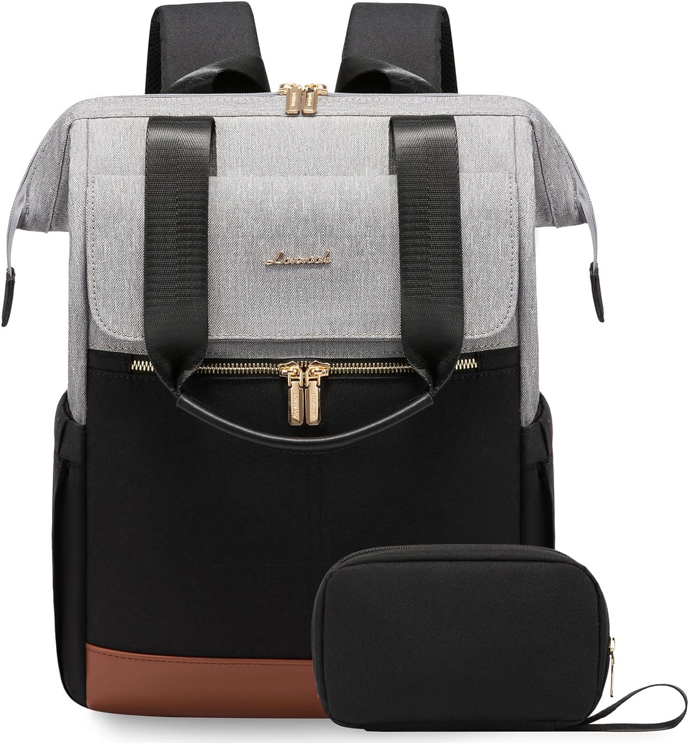 LOVEVOOK Laptop Backpack for Women, 15.6 Inch Work Laptop Bag with USB Port, Fashion Teacher Nurse Backpack Purse, Waterproof Travel Computer Backpack with Organizer Bag, 2PCS, Grey-Black