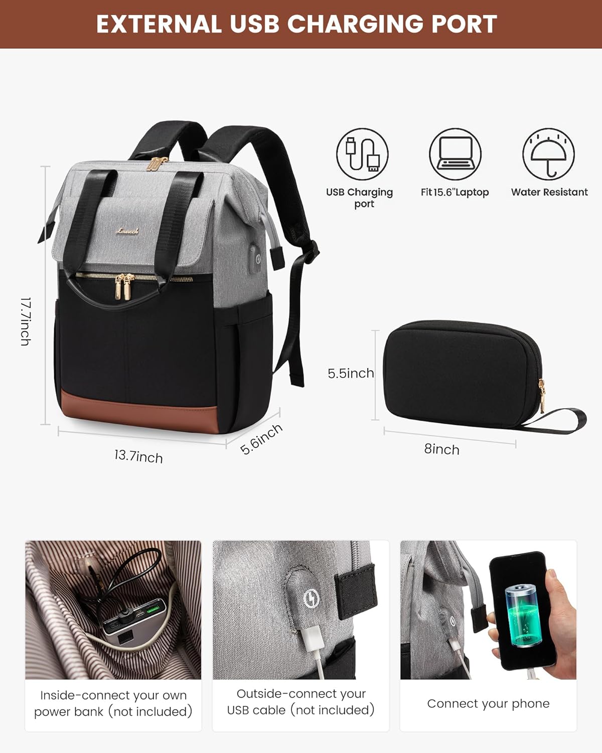 ?Large Capacity Work Backpack?Size 17.7*13.7*5.6 inch. One womens backpack to solve all daily troubles. Work bag has multiple divider pockets, easy to organize all work supplies as 15.6