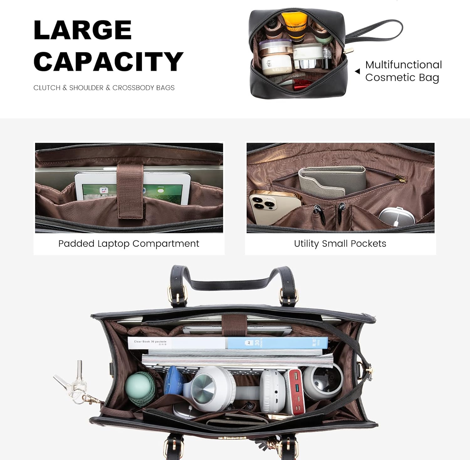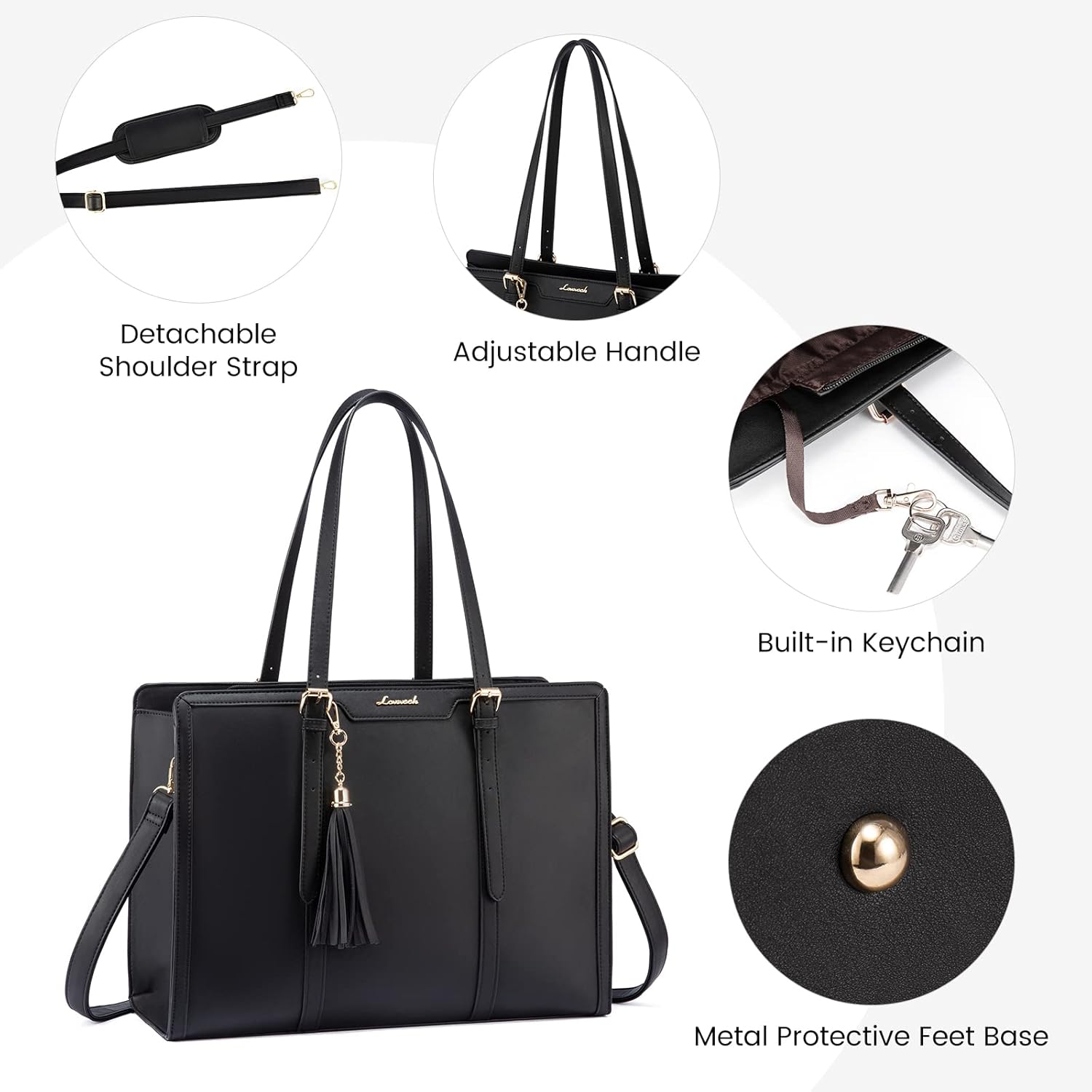 LOVEVOOK Laptop Tote Bag for Women,17 inch Canvas Leather Computer bag with Clutch Purse for Business, Travel, School, Casual