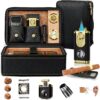 Travel Cigar Humidor Set, 2-Layer Design & CedarWood Lined, with Cigar Lighter Built-in V Cutter&Holder, Cigar Cutter, Draw Enhancer, Hygrometer, Humidifier, Portable Leather Cigar Case, Gifts for Men