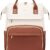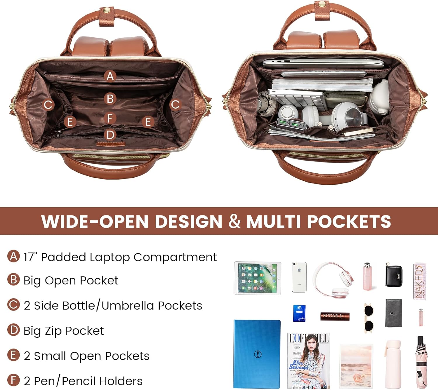 LOVEVOOK Leather Backpack for Women,17 inch Leather Laptop Backpack Women,Professional Work Backpack Nurse College Teacher Bag,Womens Laptop Tote Bag Computer Travel Backpack Purse,Beige White-Brown