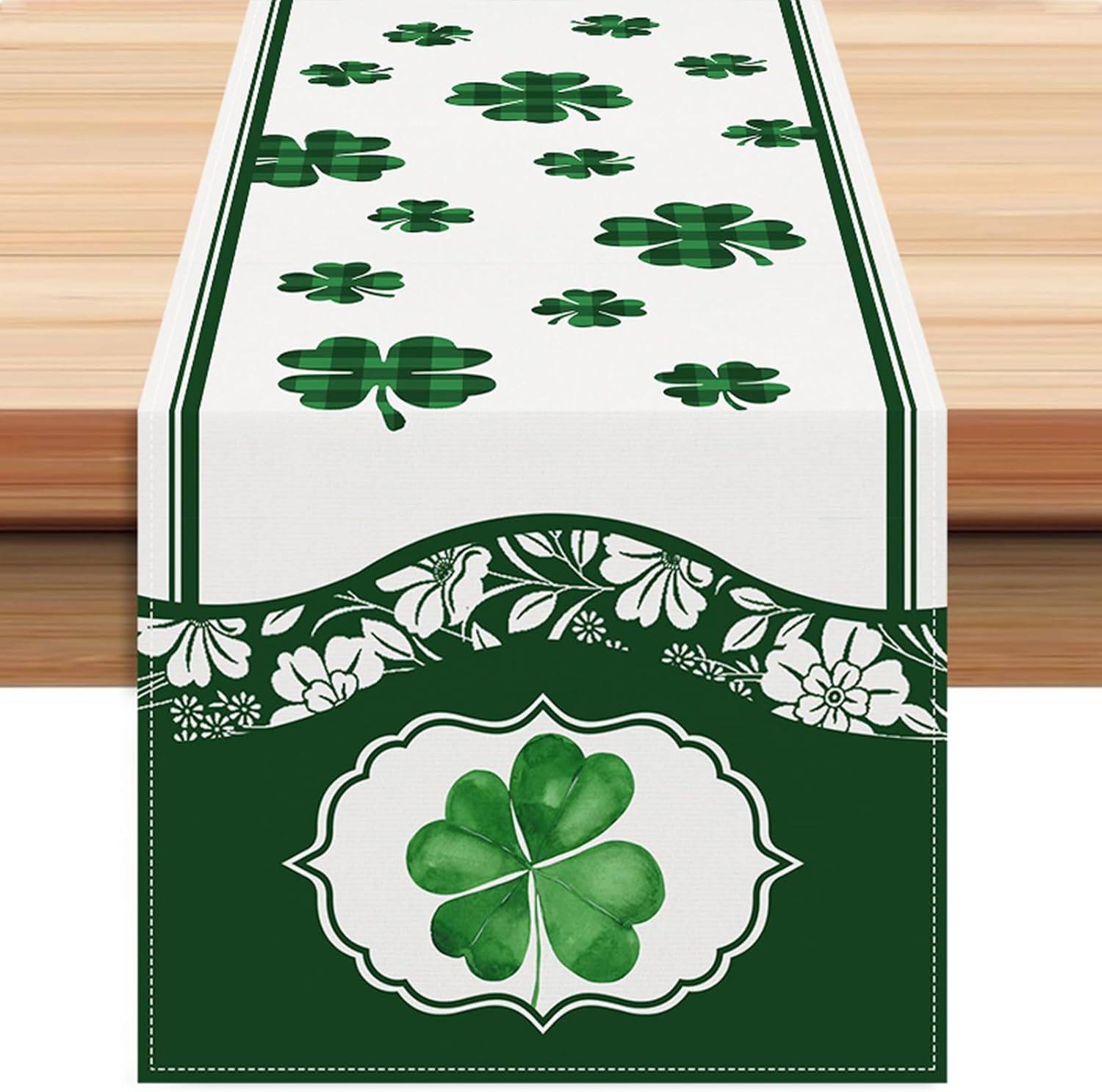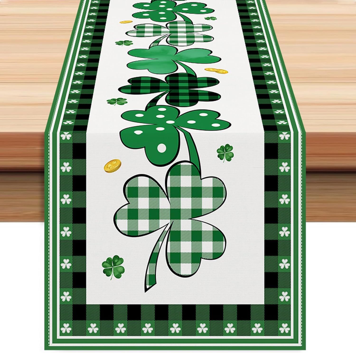 About this itemn100%polyesternHigh Quality & Durable: Made of 100% spun polyester, sturdy sewing, soft and durable, protecting your table’s surface from hot pans, scratches, and spillsnExquisite patterns and stitching: Our table runner features exquisite patterns and fine stitching craftsmanship, with neat and sturdy edges, showcasing its quality and durabilitynEasy to Clean: Machine washable. Wash the st patricks day runner in hands or in machine with cold water on gentle cycle. Lay flat or hang to dry. Stays the same and as new after every wash. No shrink. No fadingnFits Table Size: This st. patrick’s day table runner is 13 x 72 Inch, appropriate for a table that can seat 4-6 people. Offer you creative and unique ideas to decorate home, add st patricks day atmosphere to your coffee table, dining table, living room table, study table and office tablenMulti-functional use: Our table runner can be used not only as a table decoration, but also for various occasions such as home banquets, parties, festivals, etc., adding charm and style to your special occasions, showcasing your taste and style