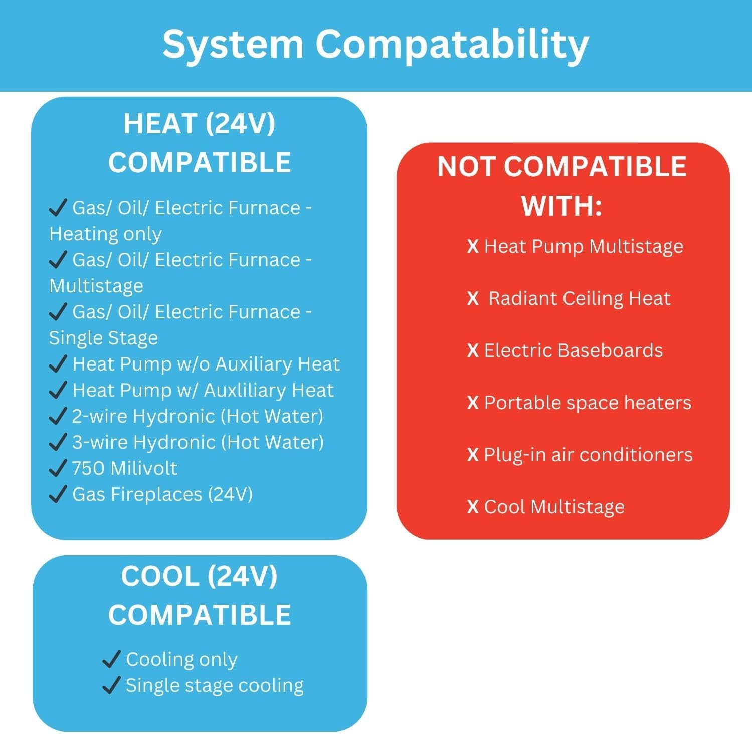 About this itemnELEVATE YOUR ATMOSTPHERE: Great for heating and cooling systems including single and multi-stage heat pumpsnUNIVERSALLY COMPATIBLE: Works with all system types except electric baseboard heatnBREATHE EASY: Know when to change your air filter with the graphical air filter monitornSLIDE INTO COMFORT: The Exclusive LUX speed slide delivers effortless programmingnSIMPLE SCHEDULING: Separate weekday and weekend programming with 2 or 4 periods per day puts comfort on your schedule