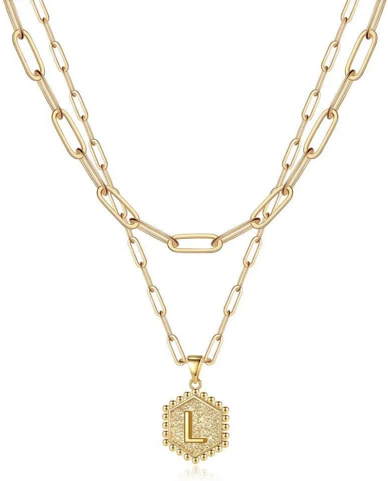 M MOOHAM Dainty Gold Necklace for Women – 14K Solid Gold Over Layering Necklaces for Women Cute Hexagon Letter Initial Necklaces for Women Gold Layered Necklaces for Women Jewelry Gifts