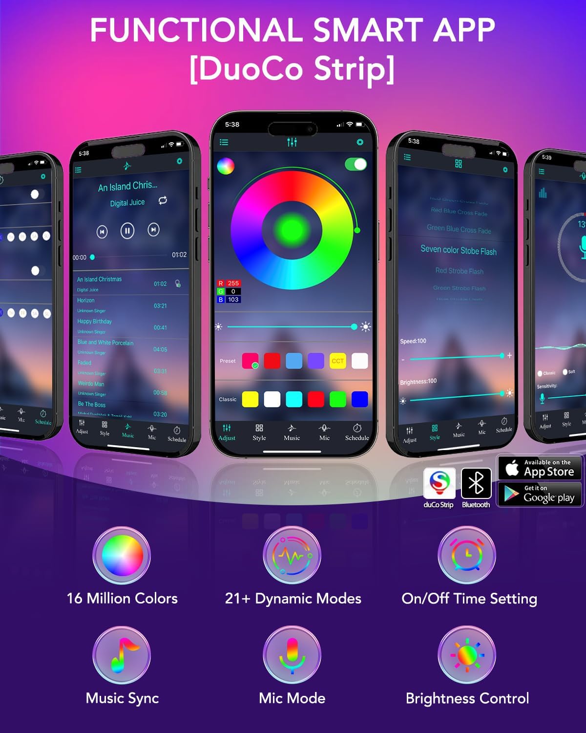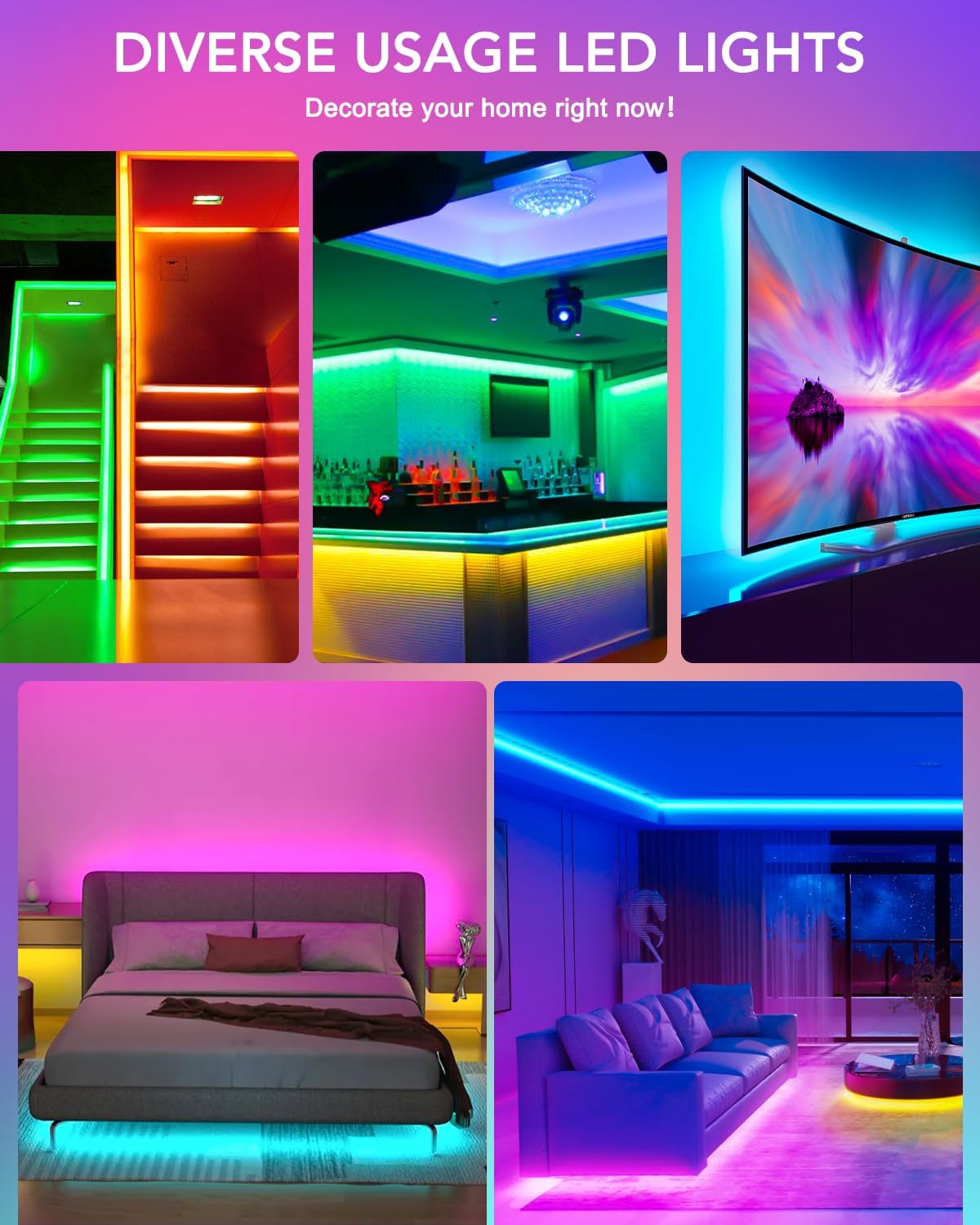 About this itemn[ AMBIENT LED LIGHTS FOR TV] No battery included- MATICOD led lights for tv is suitable for various places and atmospheres. A bright led lights for tv can provide a good viewing experience in the dark and relieve the visual fatigue caused by the dim environment. Variety of color and dynamic options make tv lights the perfect atmosphere maker. Can be a novelty gifts for your family, friends, loved ones!n[ MUSIC SYNC TV LED LIGHTS ] Do you want a tv led lights that sync with tv? Look here, our tv led backlight within a built-in high-sensitivity microphone. Open the microphone mode through our APP, the tv led backlight will automatically change with surrounding sounds. No matter if you want to listen to a relaxing song or watch an exciting movie, our tv led backlight will be the best atmosphere creator!n[ 3 WAYS CONTROL YOUR TV LED BACKLIGHT ] – We provide three methods to control the led lights for tv, including Bluetooth app control/24-key remote control/3-key controller control. Allows you to choose the fastest and most convenient way to adjust the led lights for tv anytime, anywhere. Use a smart, simple way to control your tv led lights. Download the free APP
