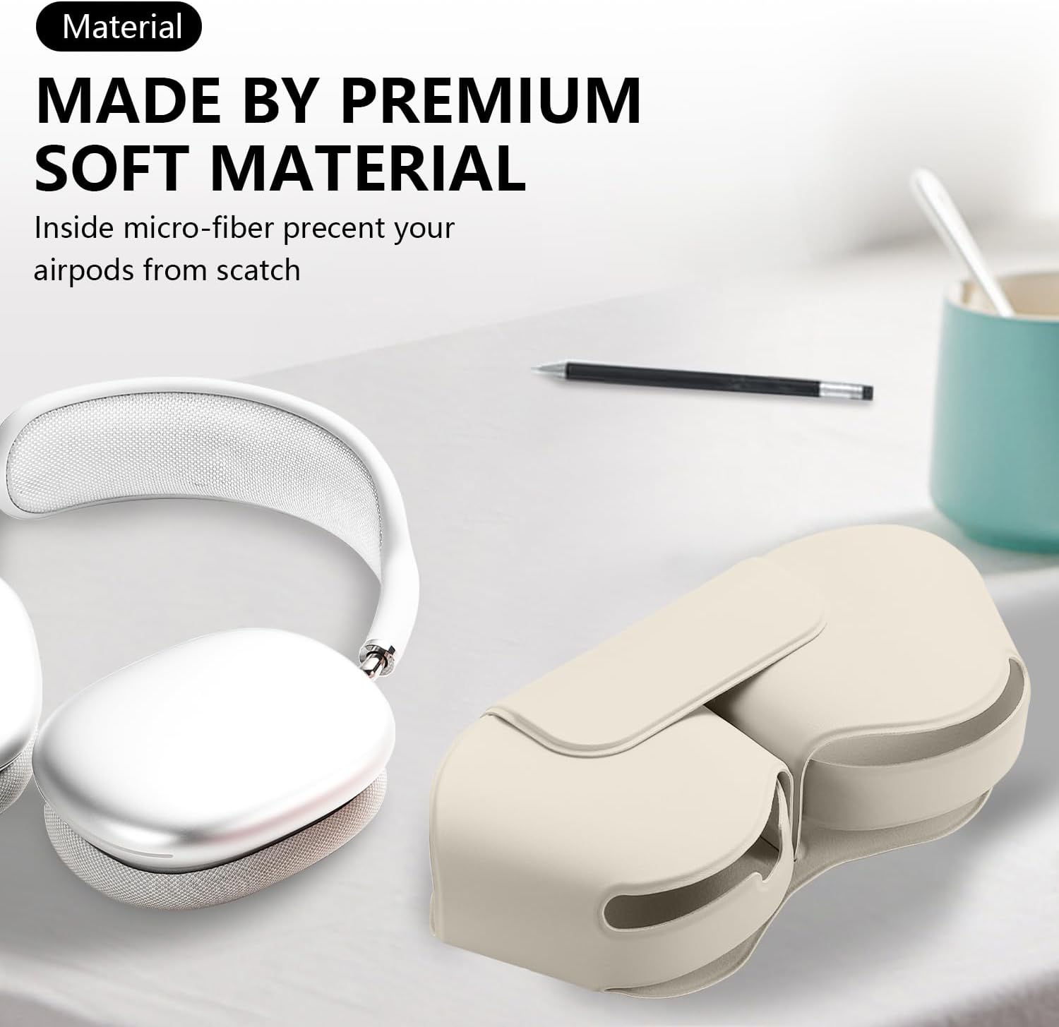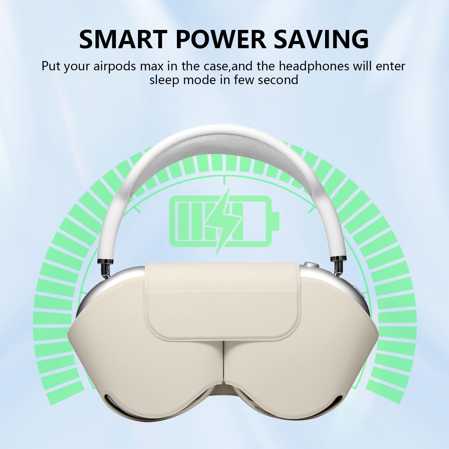 Maxjoy for Apple Airpods Max Smart Case Cover, Soft PU Leather Protective Cover Accessories for Airpod Max with Sleep Mode, Anti-Dust Travel Carrying Case for Airpods Pro Max Headphones, Off White
