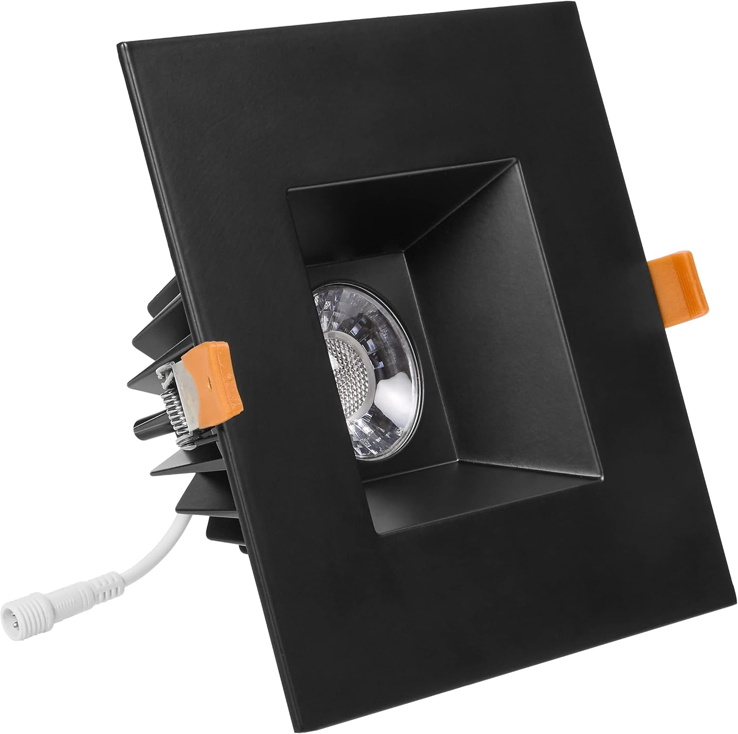 Maxxima 6 Ultra-Thin Recessed Anti-Glare LED Downlight Canless IC Rated 1200 Lumens 5 Color Temperature Select 2700K/3000K/3500K/4000K/5000K Dimmable Square Black Trim 90 CRI 5CCT Slim J-Box Included