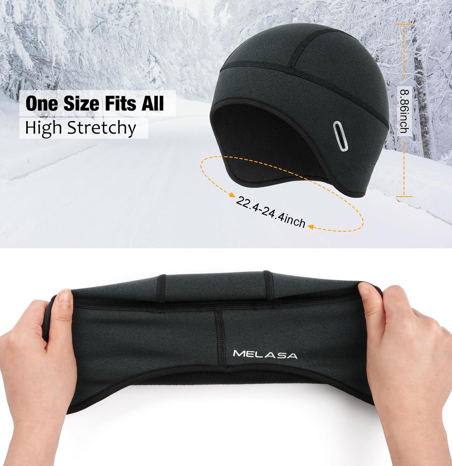 MELASA Winter Helmet Liner Skull Cap, Fleece Lined Warm Cycling Cap with Glasses Holes, Thermal Hat Beanie for Men Women