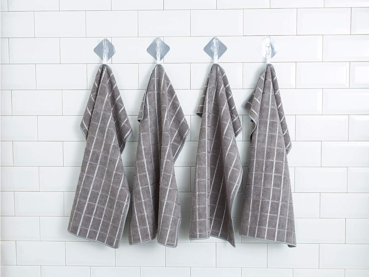 Microfiber Dish Towels – Soft, Super Absorbent and Lint Free Kitchen Towels – 8 Pack (Lattice Designed Gray Colors) – 26 x 18 Inch