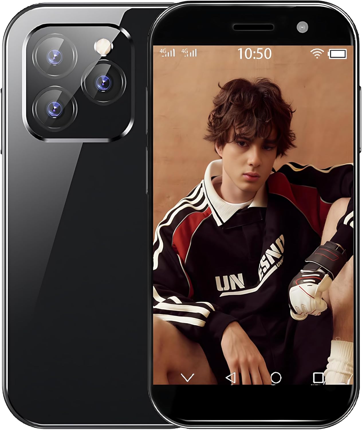 Mini Smartphone 4G Unlocked 3.0 Inch Quad Core Dual Sim Card Face ID 2600mAh Android Kids Small Mobile Phone Students Pocket Premium Child Cellphone(Black,3GB+32GB)