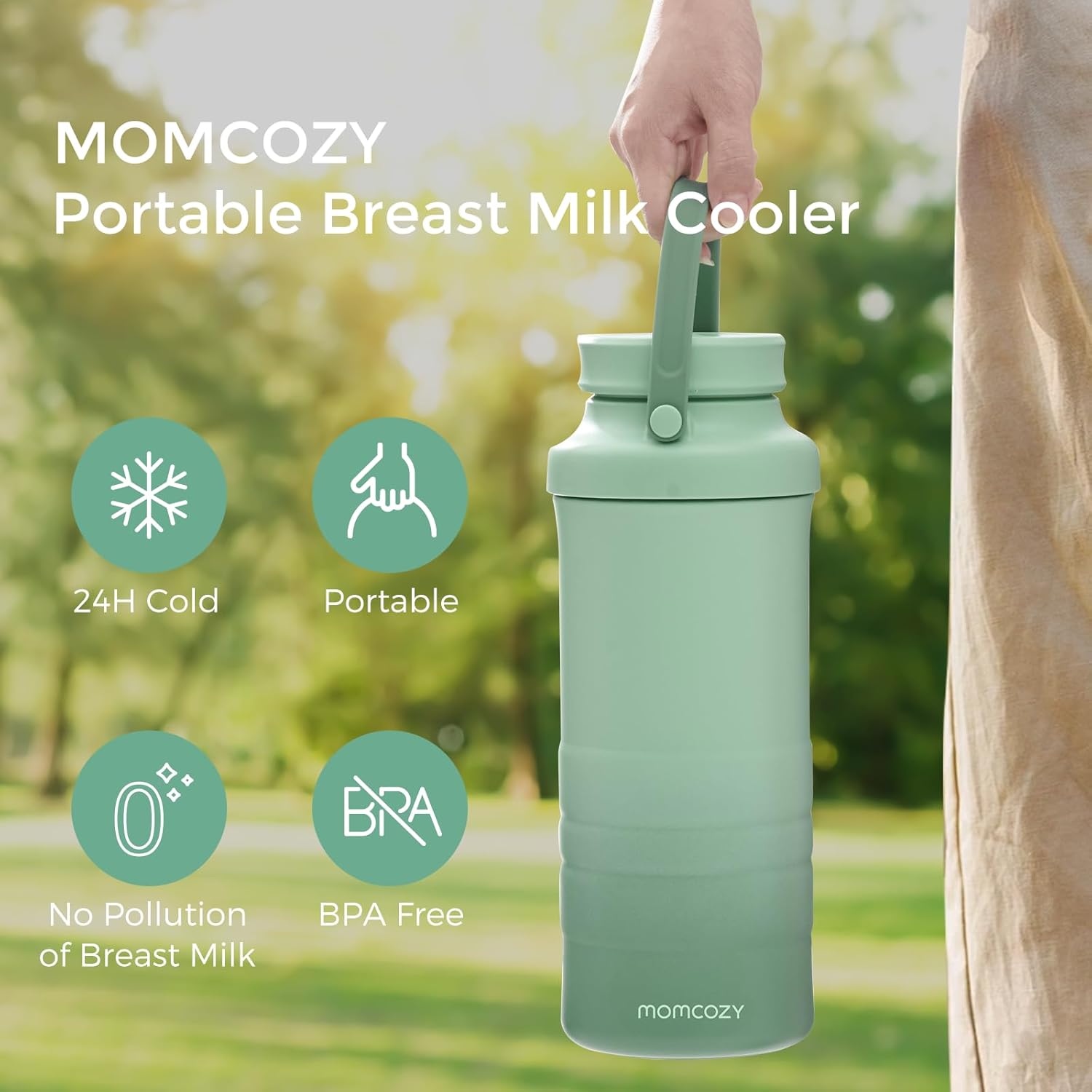 24H+ Extended Outdoor Cooling: Momcozy breast milk cooler adopt 360° surround cooling tube technology keeps temperatures consistently cold for over 24 hours, preserving the freshness of your breast milk and preventing nutrient loss during outdoor activities.nSimple and Convenient: Just pop the cooling tube in the refrigerator (around 0?) for 12 hours beforehand (adjust freezing time as necessary), and then move it to the milk cooler for easy use.n22oz Increased Capacity & Separate Storage: 22oz individual storage bottles catering to your storing and feeding needs all day long. To accommodate multiple pumping sessions, use the 2 separate bottles to divvy up warm and cold milk, eliminating spoilage and ensuring your baby’s health is safeguarded.nHassle-free Cleaning : The inner bottle can be cleaned and sterilized in Momcozy bottle washer, freeing busy moms from manual cleaning.nOuting or Working with ease: With the Momcozy breastmilk cooler, you can easily take it with you wherever you go. breeze through security and bring your breast milk on board. Enjoy hassle-free breastfeeding on the go, at work, or while traveling without the hassle of extra ice packs.nSafe and Reliable: Momcozy breastmilk chiller is food-grade tested and BPA-free, ensuring your safety throughout your breastmilk storage journey.n See more product details