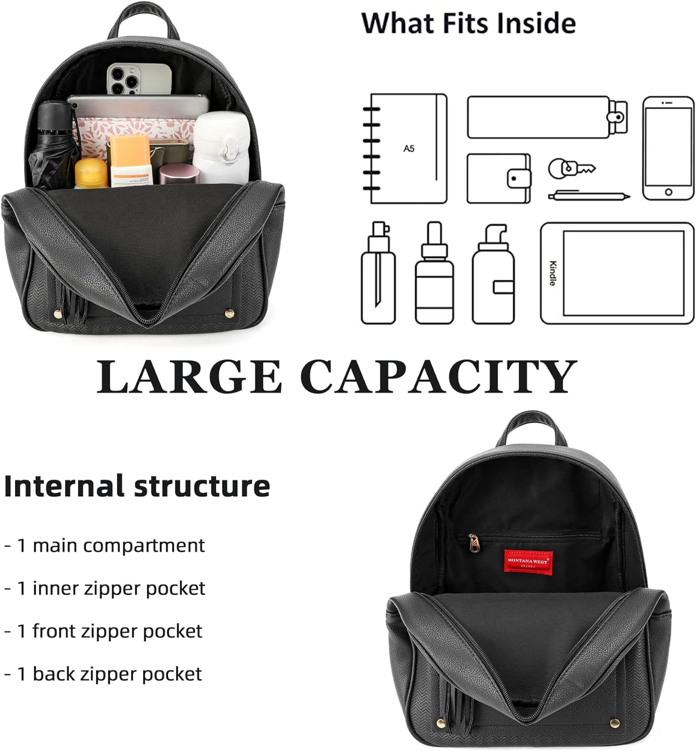 The Montana West backpack collection fuses classic elegance with a modern flair, featuring the iconic anti-theft twist lock that enhances security without sacrificing stylenThis medium backpack measures 15.2