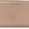 Prada Wallet For Women -Women's Beige Leather Long Wallet 1ml506 Vitello Move Nero Zip Around - Women Wallet - Womens Wallet Designer