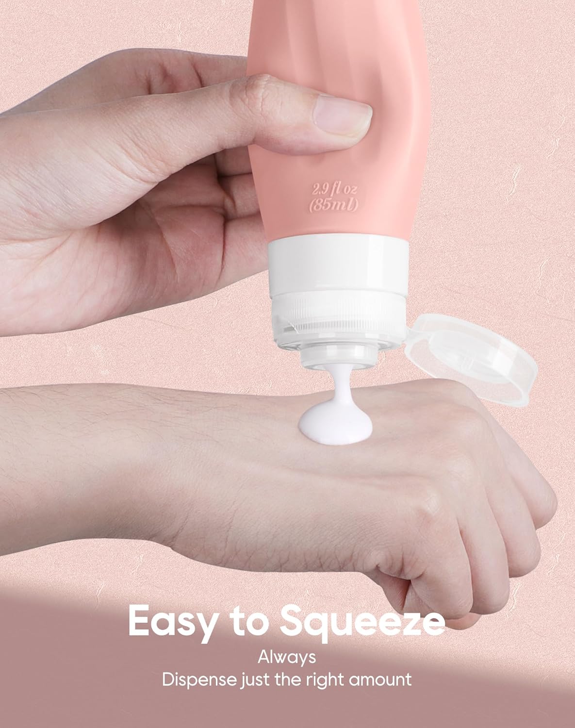 About this itemnTSA approved leakproof travel bottles, portable toiletry accessories fit 3oz capacity limit for carry on luggagenBPA free silicone material, squeezable and collapsible design makes travel bottles easy to use and cleannWide mouth opening with detachable funnel for easy filling, tight screw on lids keep contents secure and prevent leaksnIncludes 4 bottles, 4 jars, 2 spray bottles, scoopers, funnel, brush, label and bag for organizing toiletriesnGreat for travel essentials like shampoo, lotion, mouthwash; suitable for airplane, cruise, camping, gym, business trips