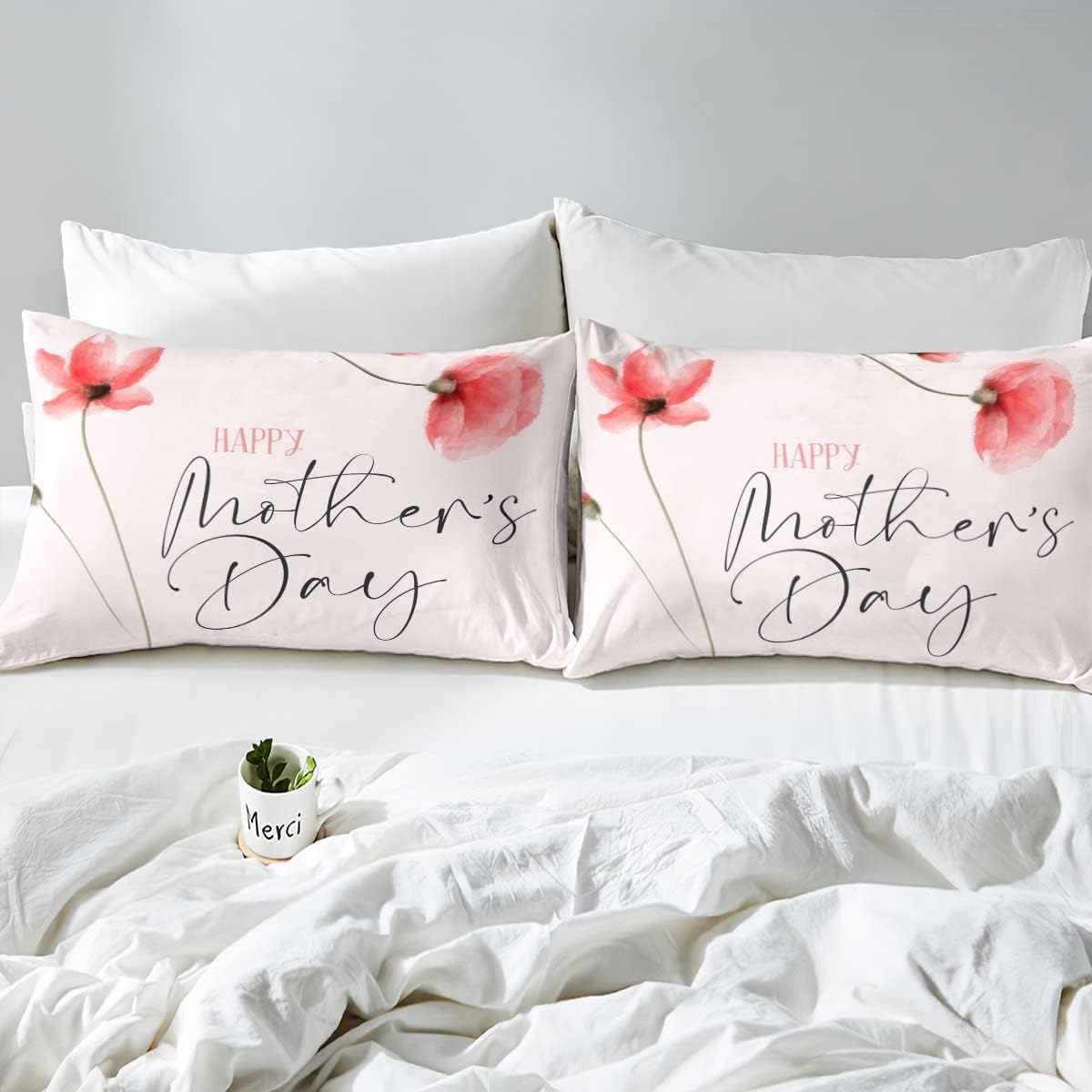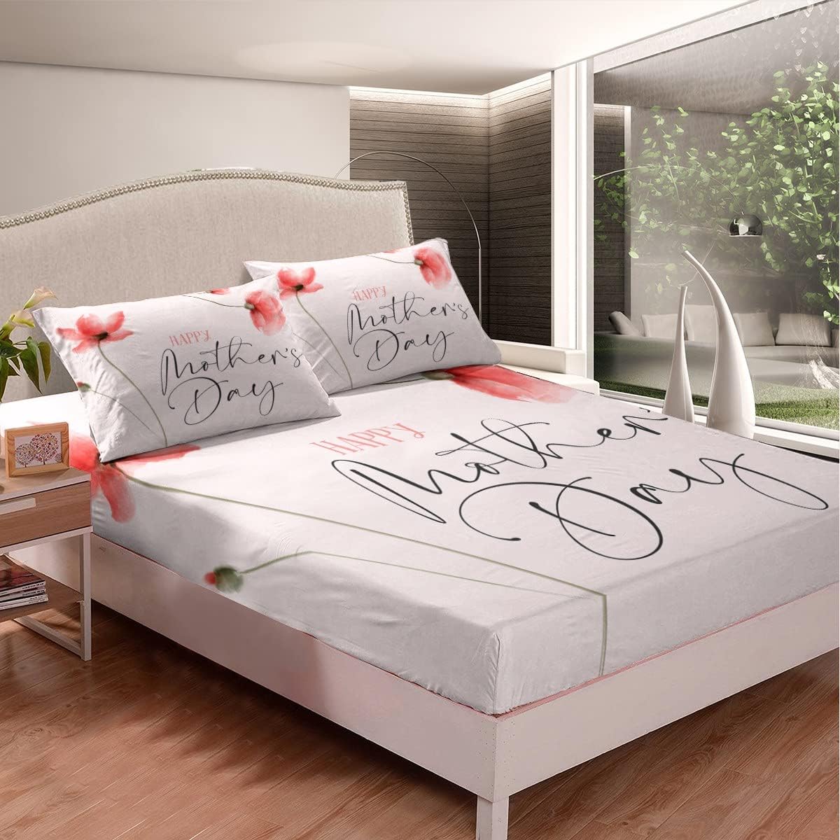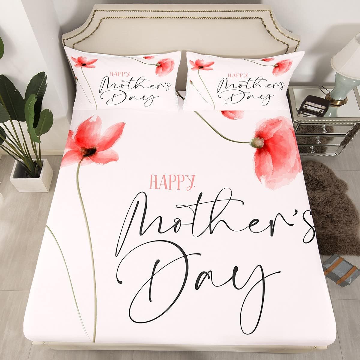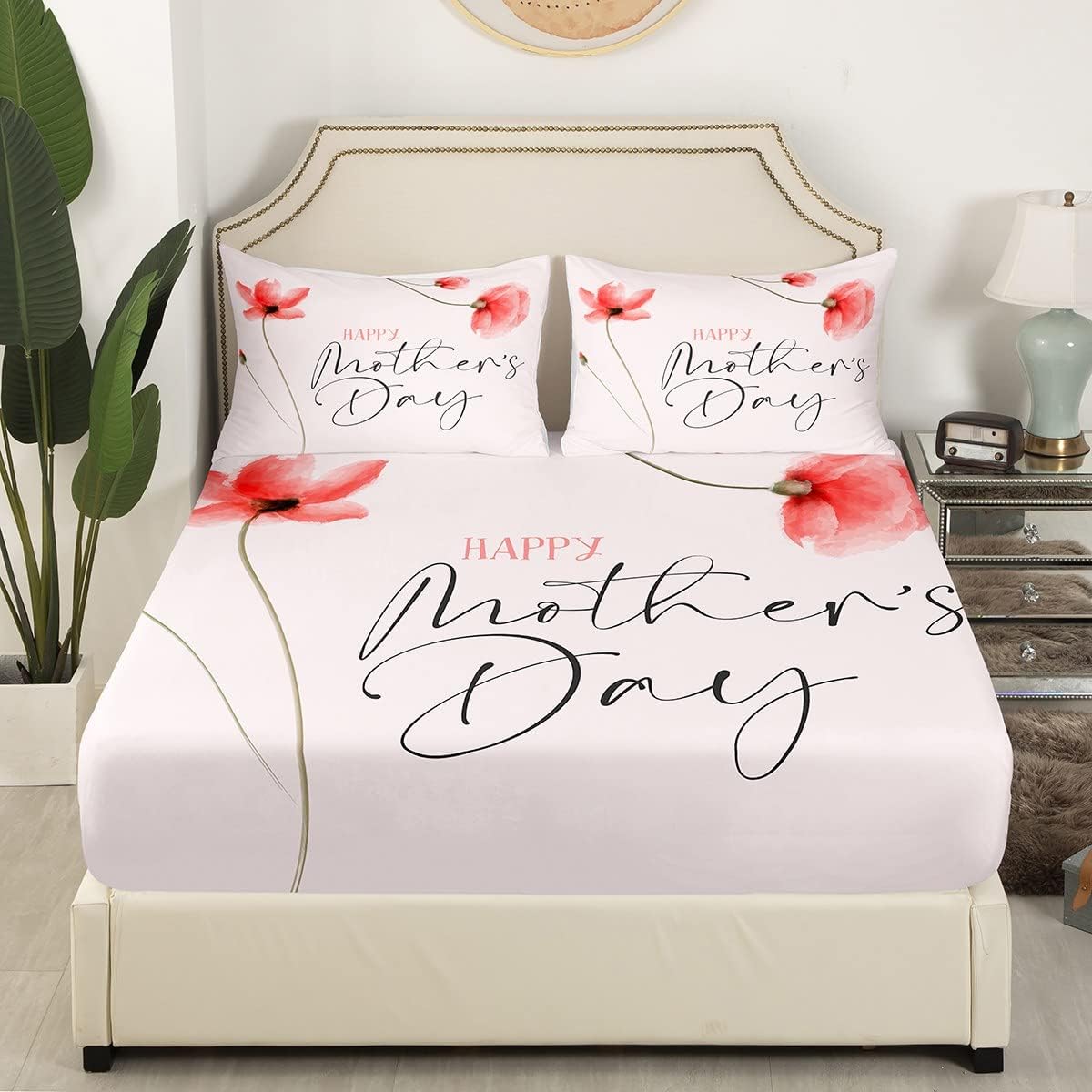 Mother’s Day Theme Fitted Sheet Twin Size for Women Mother Grandmother Room Decor Pink Floral Botanical Bedding Set 2pcs Romantic Pink Deep Pocket Sheet Warm Lightweight Bed Sheets,1 Pillowcase