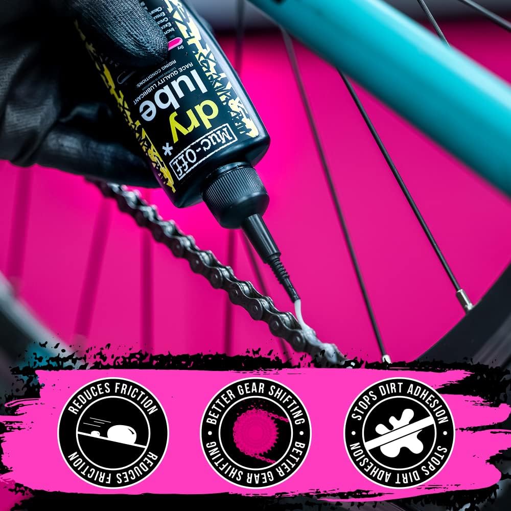 About this itemnULTRA-DURABLE: Muc-Off Bio Dry Lube is an ultra-durable bike chain lube that penetrates deep to provide long-lasting lubrication.nREDUCES FRICTION: Advanced formula reduces friction and energy consumption to ensure silky-smooth gear shifts.nIDEAL FOR DRY WEATHER: Our Bio Dry Chain Lube uses a wax-based formula to protect against contaminants in dry and dusty conditions.nBIODEGRADABLE: Fully biodegradable chain lubricant that is just as friendly on the environment as it is on your ride.nSUITABLE FOR ALL BIKES: Whether you prefer to hit the road or shred the trails on your MTB, Muc-Off Bio Dry Lube is the perfect choice for protecting your bike’s chain.