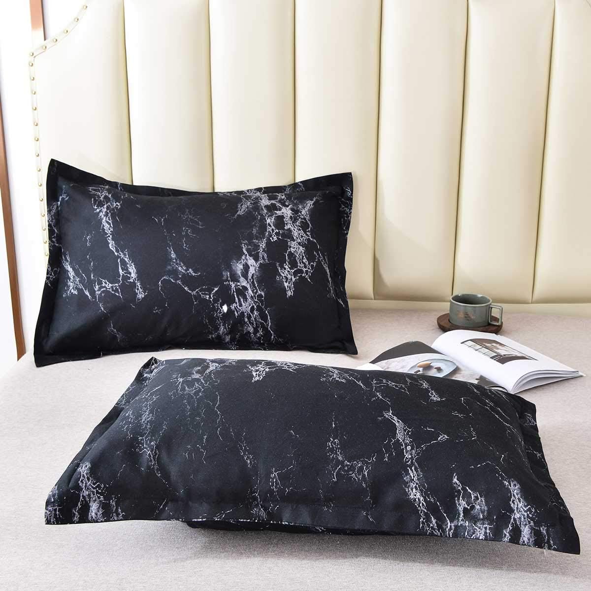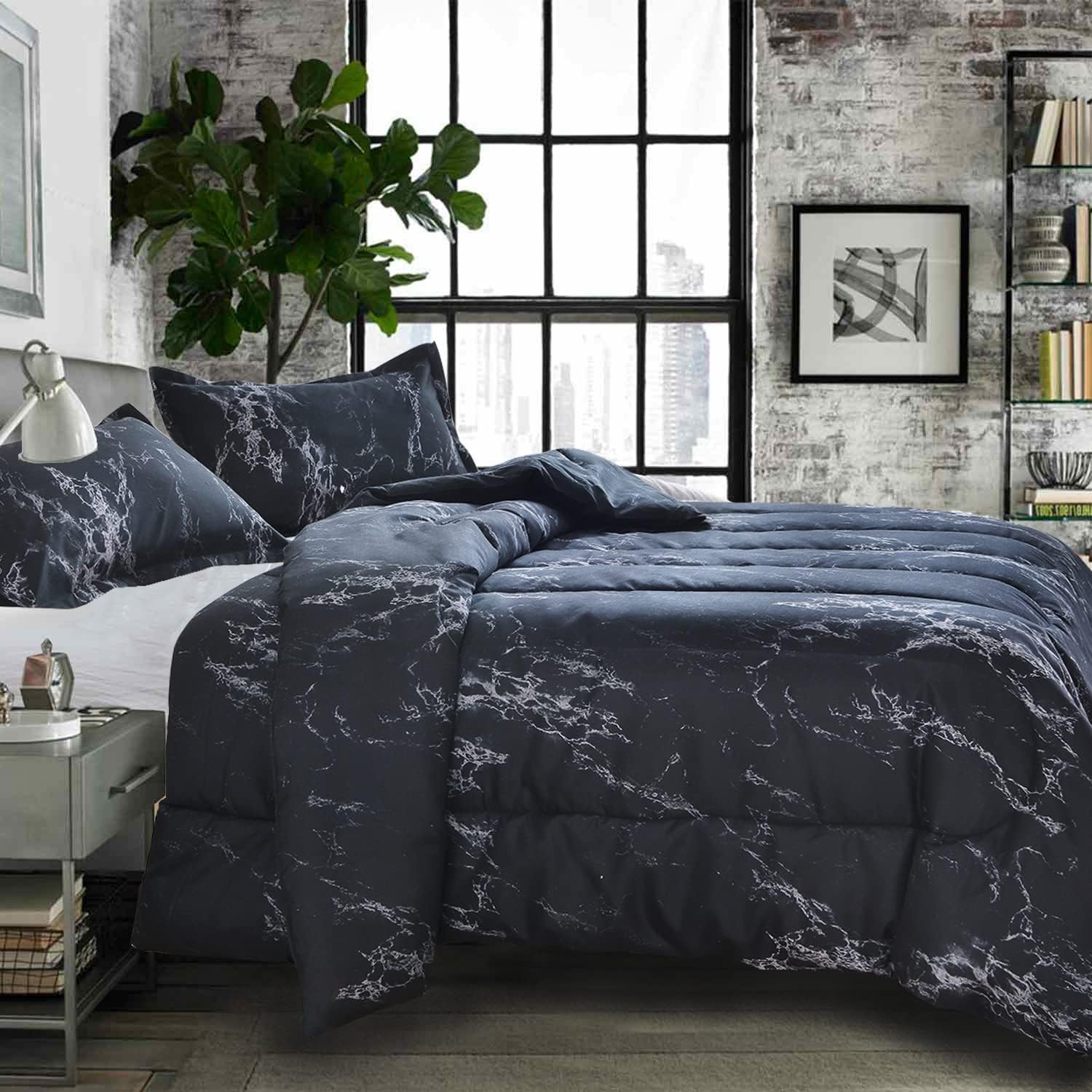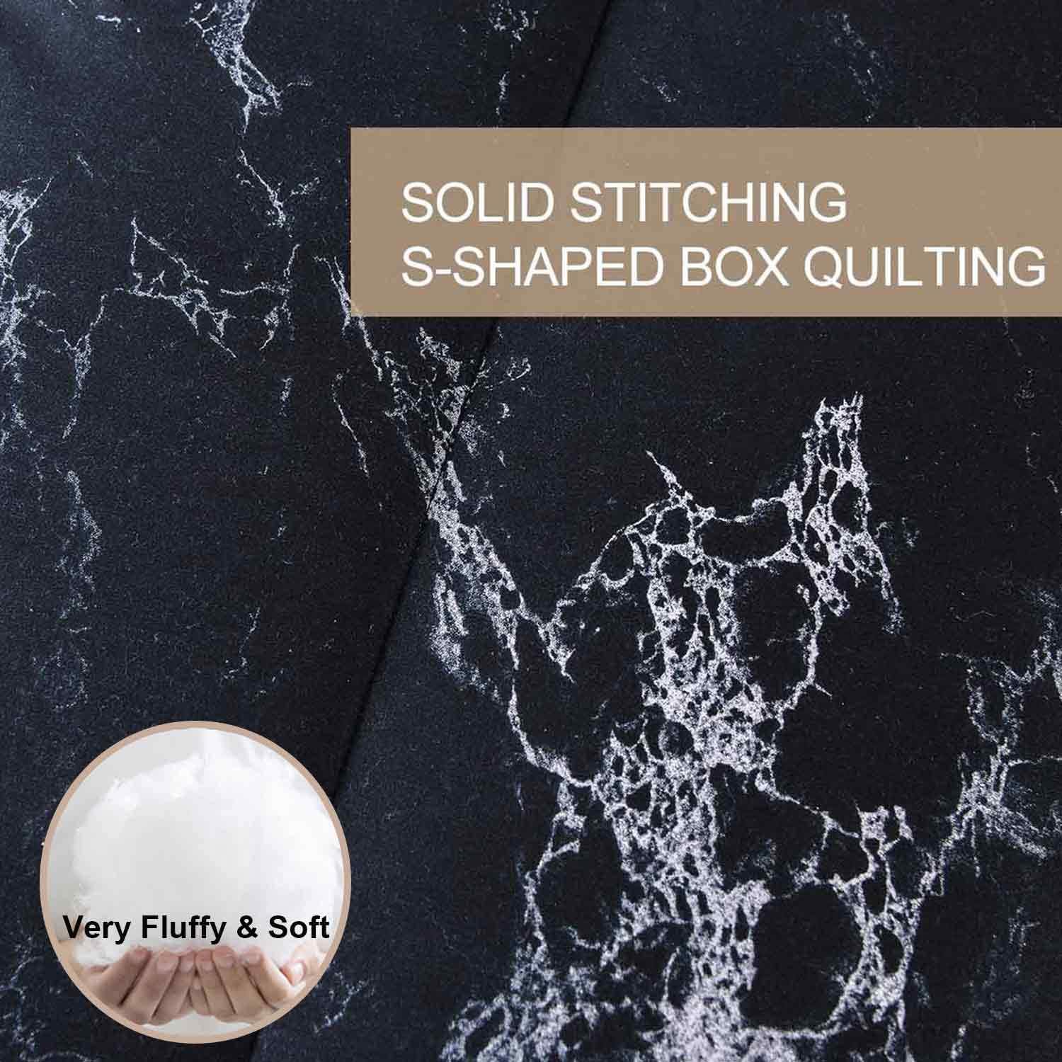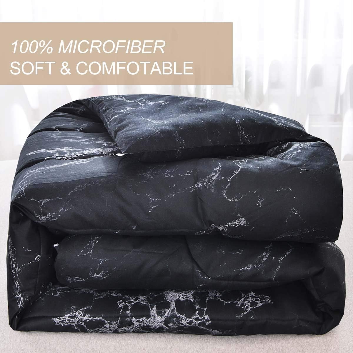 Nanko Comforter Set Queen Size, Dark Black Marble Print 88 x 90 inch Reversible Down Alternative Comforter Microfiber Duvet Sets (1 Comforter + 2 Pillowcases Modern Bedding for Women Men