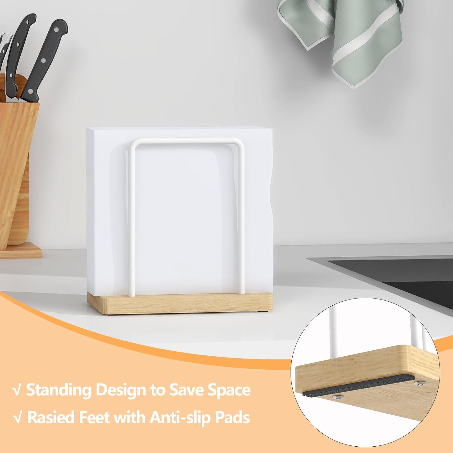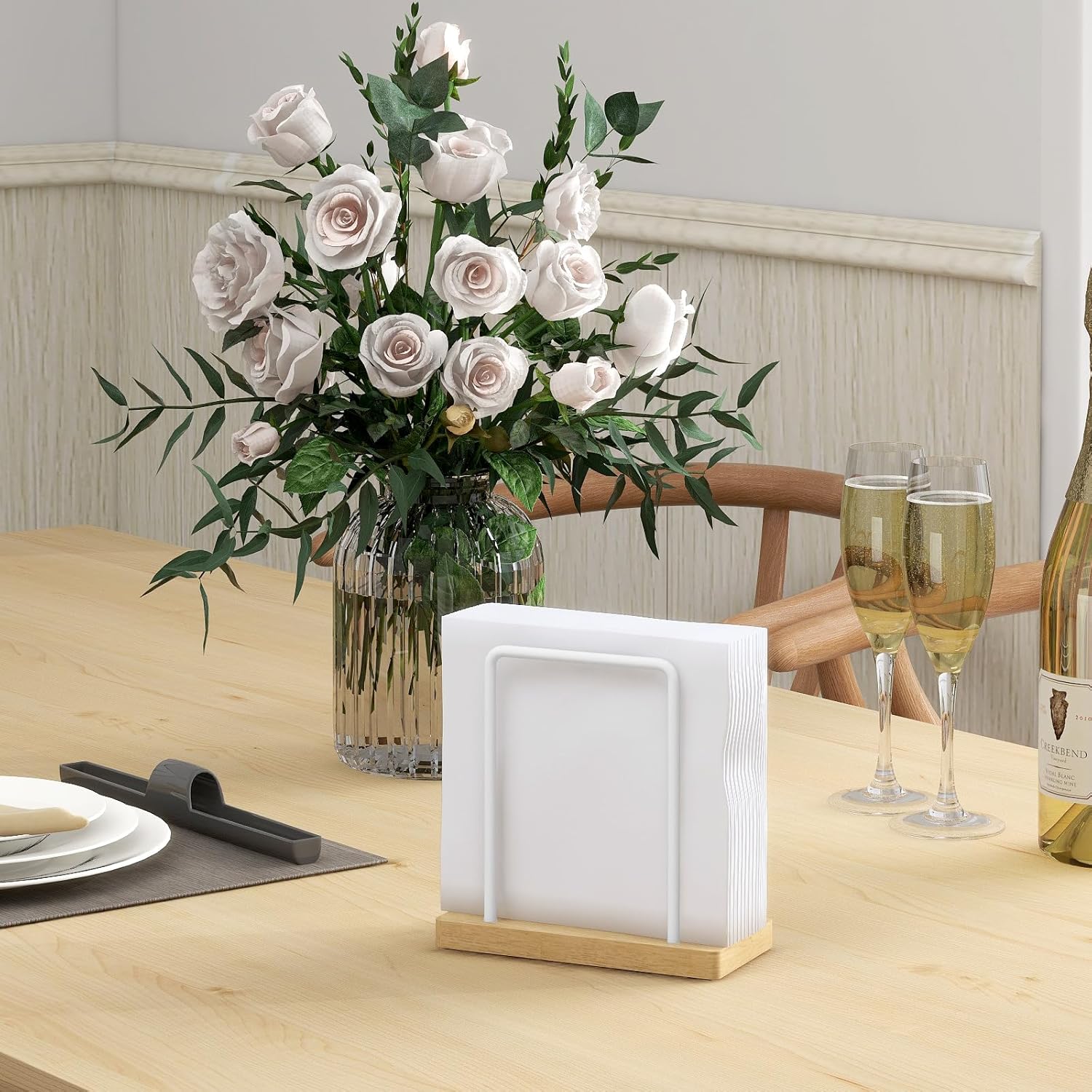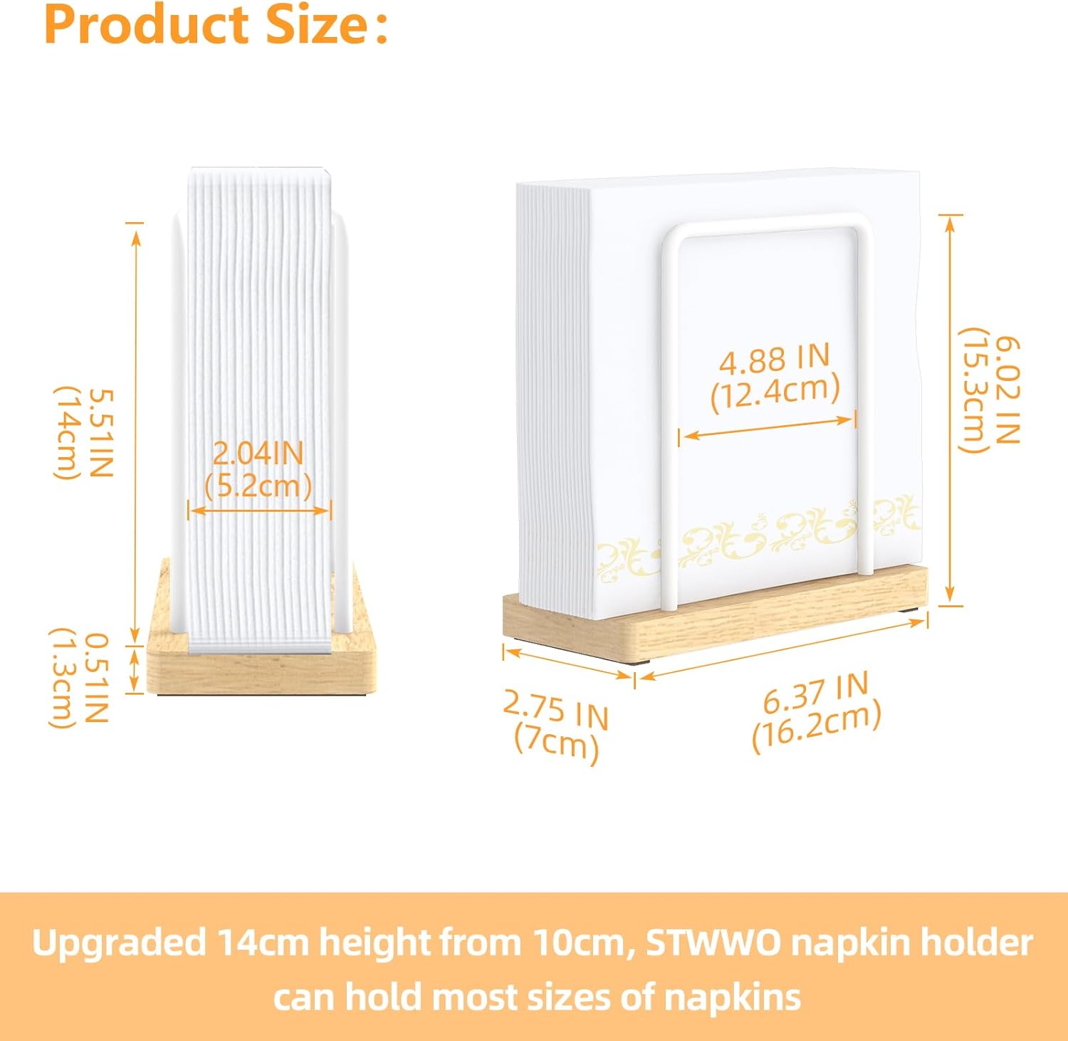 Napkin Holder for Table, Wood Metal Napkin Holder for Kitchen Dining, Standing Paper Napkin Storage for Table Countertop, White