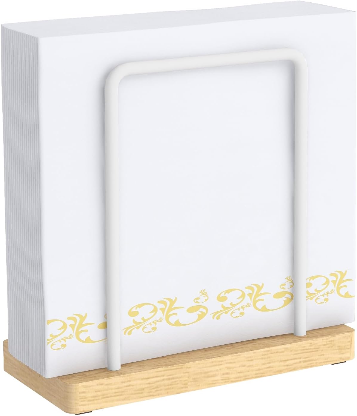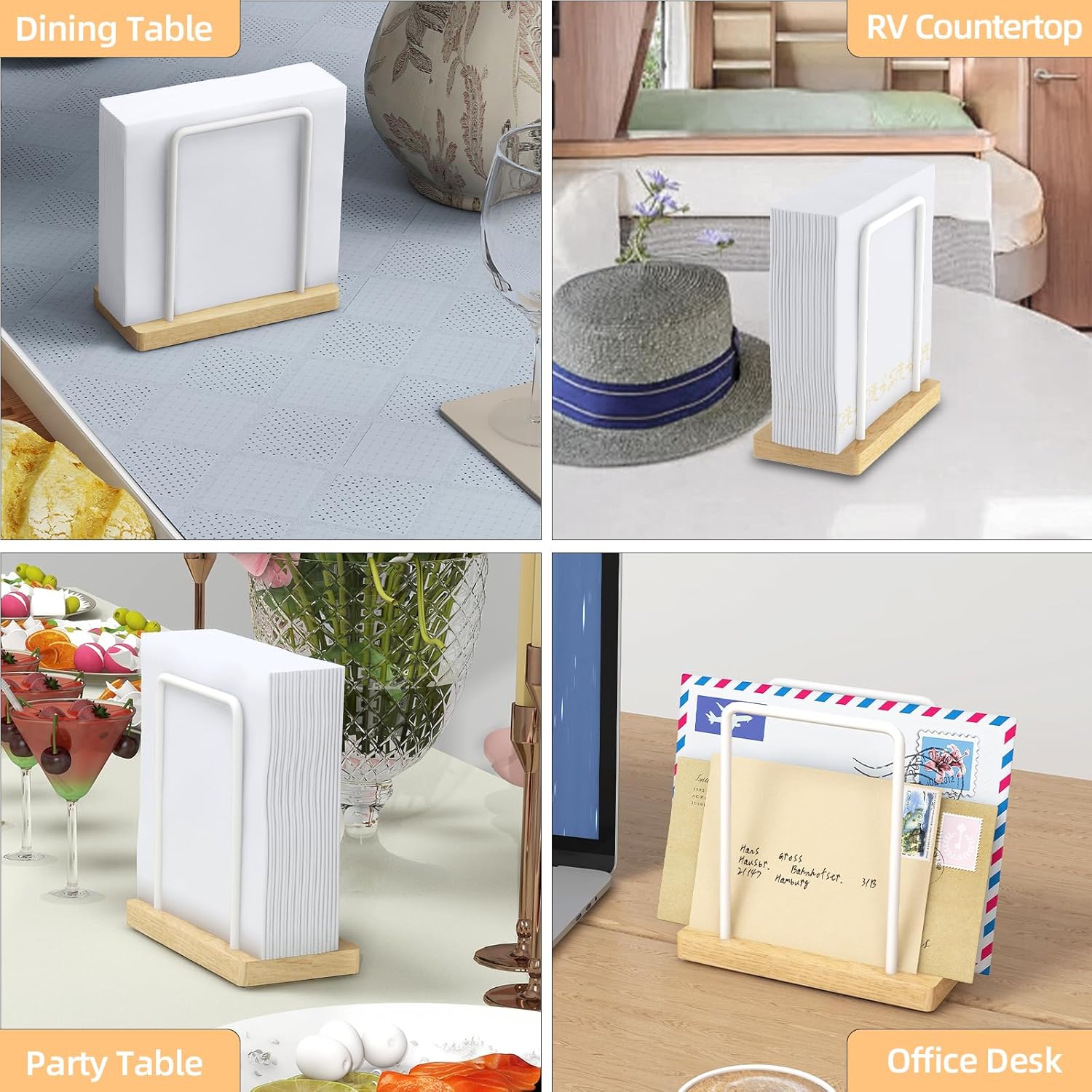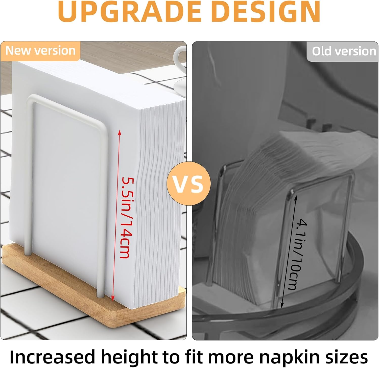 Napkin Holder for Table, Wood Metal Napkin Holder for Kitchen Dining, Standing Paper Napkin Storage for Table Countertop, White