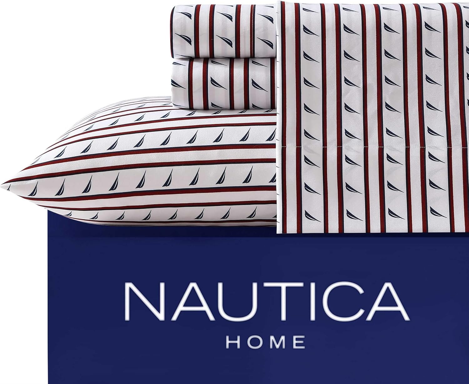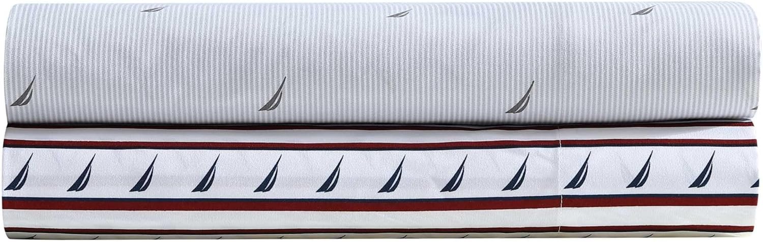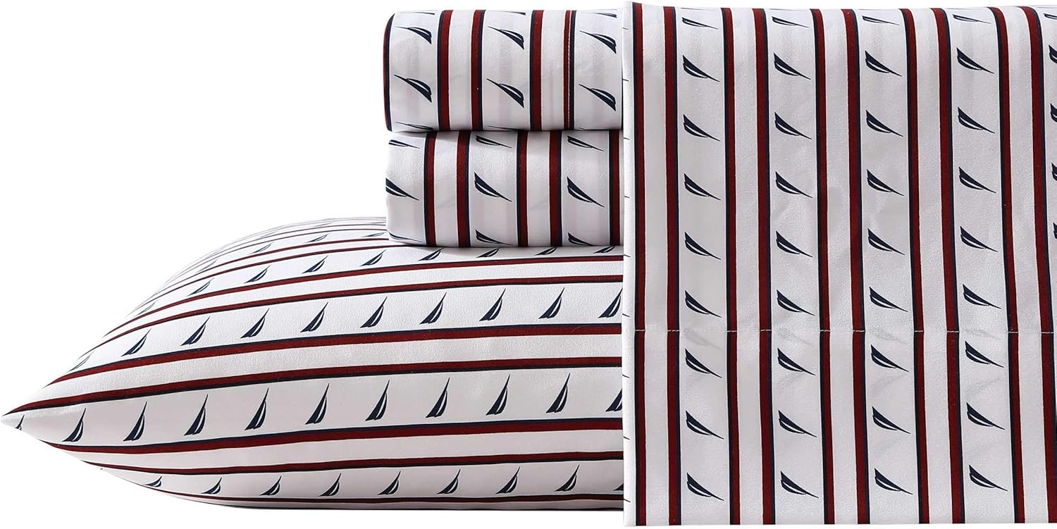 Nautica – Twin XL Sheet Set, Breathable & Cooling Microfiber Bedding with Matching Sham(s), Casual Home Decor (Striped J-Class Red, Twin XL)