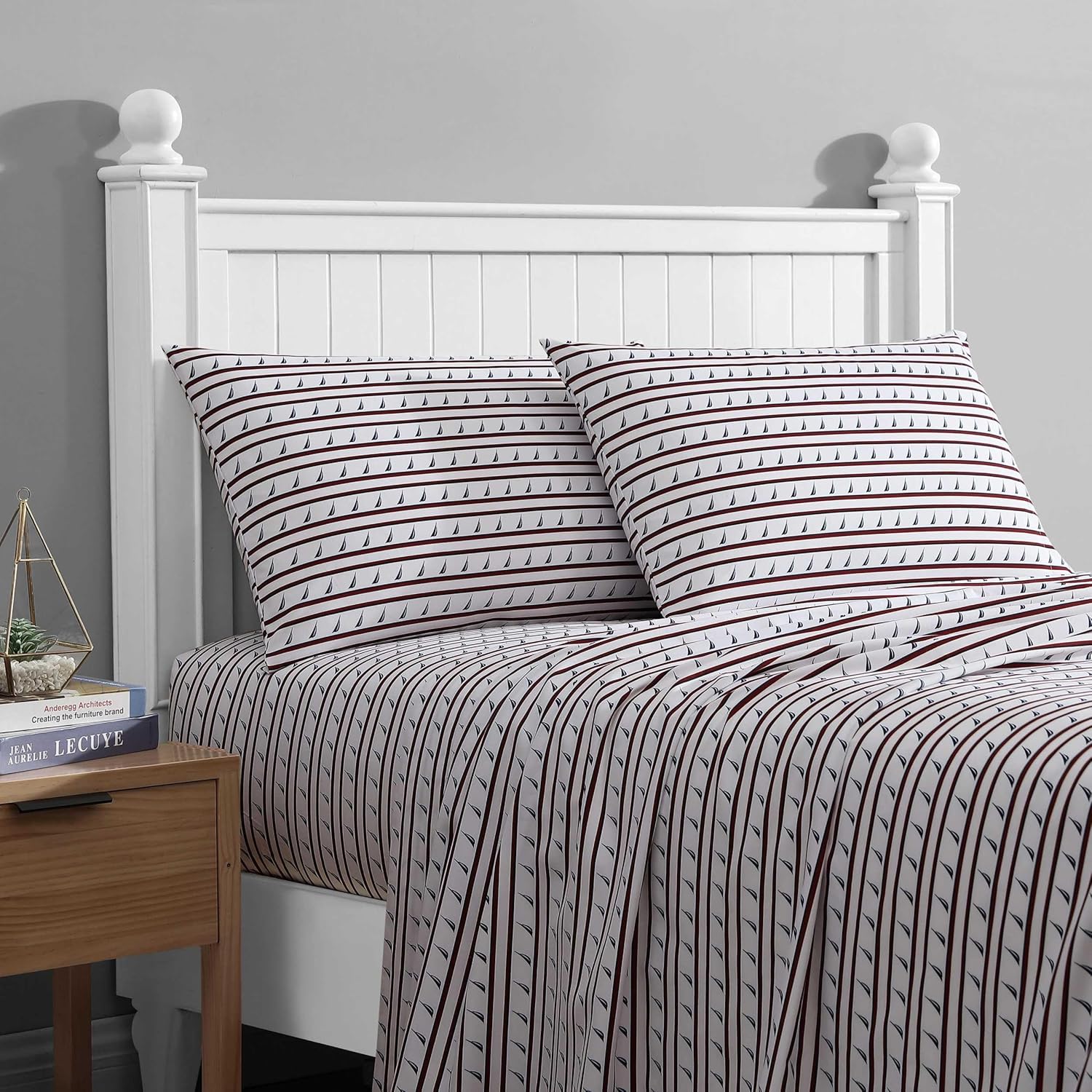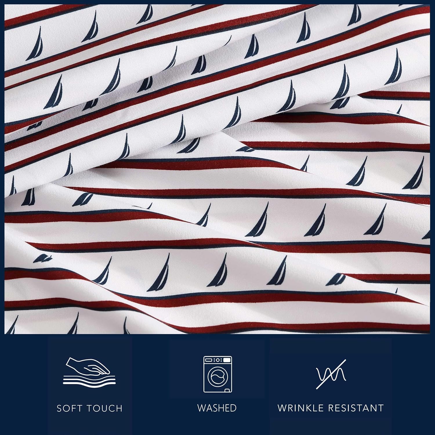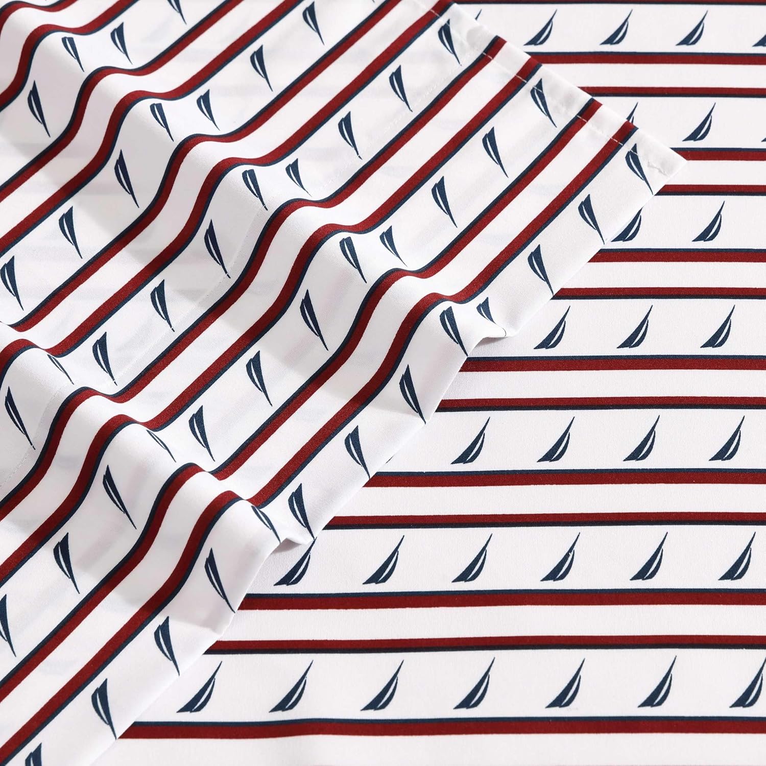 Nautica – Twin XL Sheet Set, Breathable & Cooling Microfiber Bedding with Matching Sham(s), Casual Home Decor (Striped J-Class Red, Twin XL)