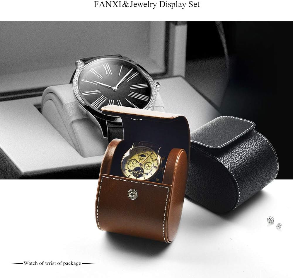 Oirlv Luxury Leather Watch Storage Box Travel Single Watch Case Watch Gift Box for Christmas Anniversary Birthday(Brown)