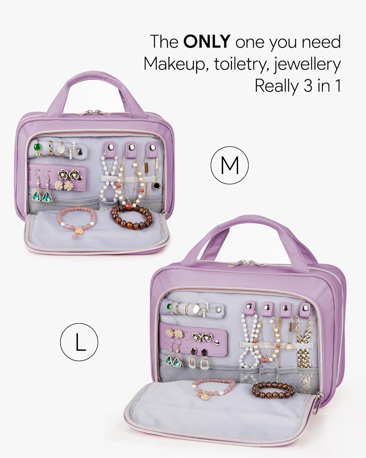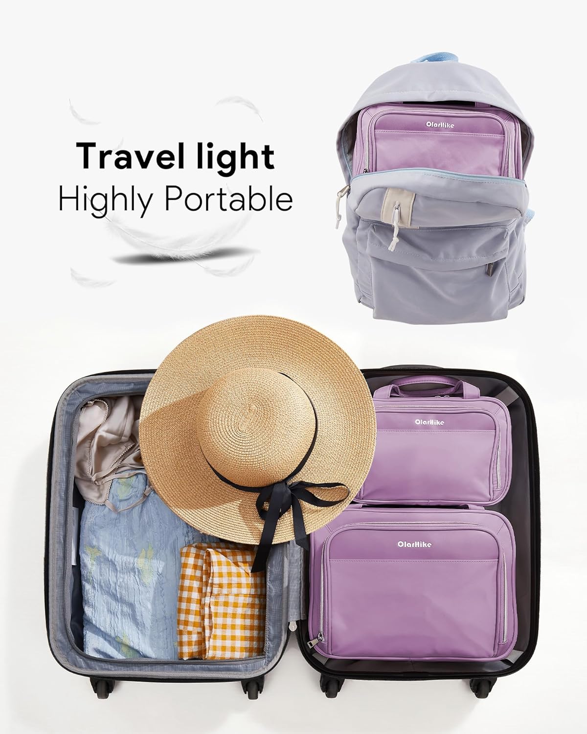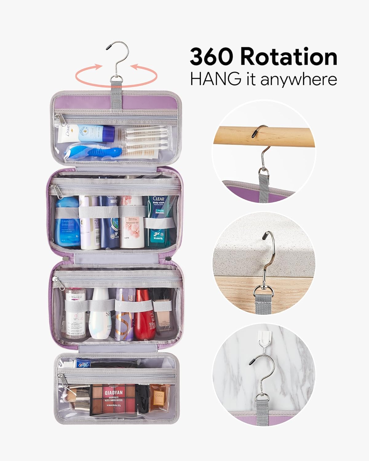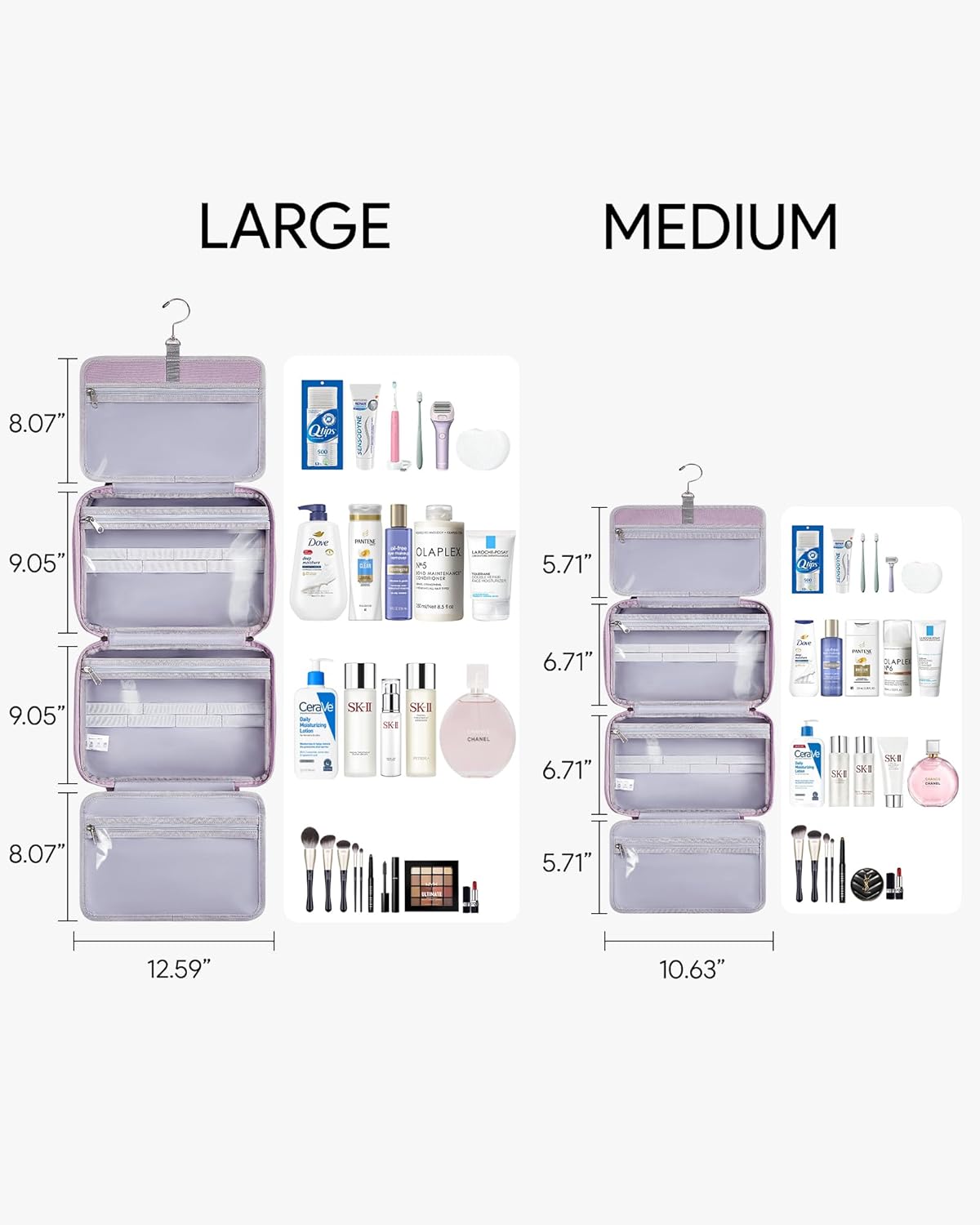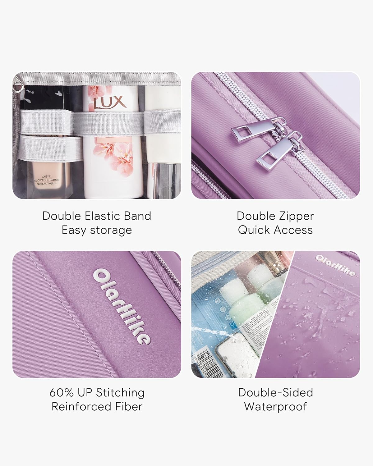 OlarHike Toiletry Bag,Large Size Waterproof Leather Hanging Bags, Makeup Jewelry 3 in 1 Essentials Travel Packing Organizers, Fulled-Sized Family Pack, Shampoo, Conditioner, Brushes Set (Purple)