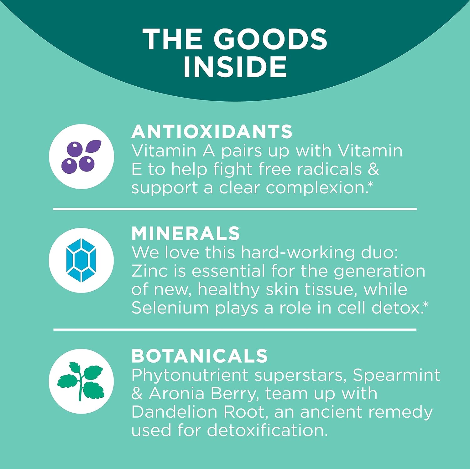 About this itemnClear Complexion Gummies: OLLY’s Flawless Complexion gummies are packed with antioxidants like Vitamins A and E, as well as purifying minerals like zinc and selenium, to support a clear and radiant complexion from within.nNatural and Delicious: These Berry Fresh flavored gummies are naturally colored and flavored, without any artificial additives, and are also gluten-free, making them a tasty and healthier treat.nEasy and Convenient: Simply chew two gummies daily, no need for water or food, providing a 25-day supply of these skin-nourishing gummies in each bottle.nHeat and Sun Sensitive: Please note that exposure to heat or sunlight may cause melting or damage to the product, so it’s recommended to be available for delivery to avoid any issues.