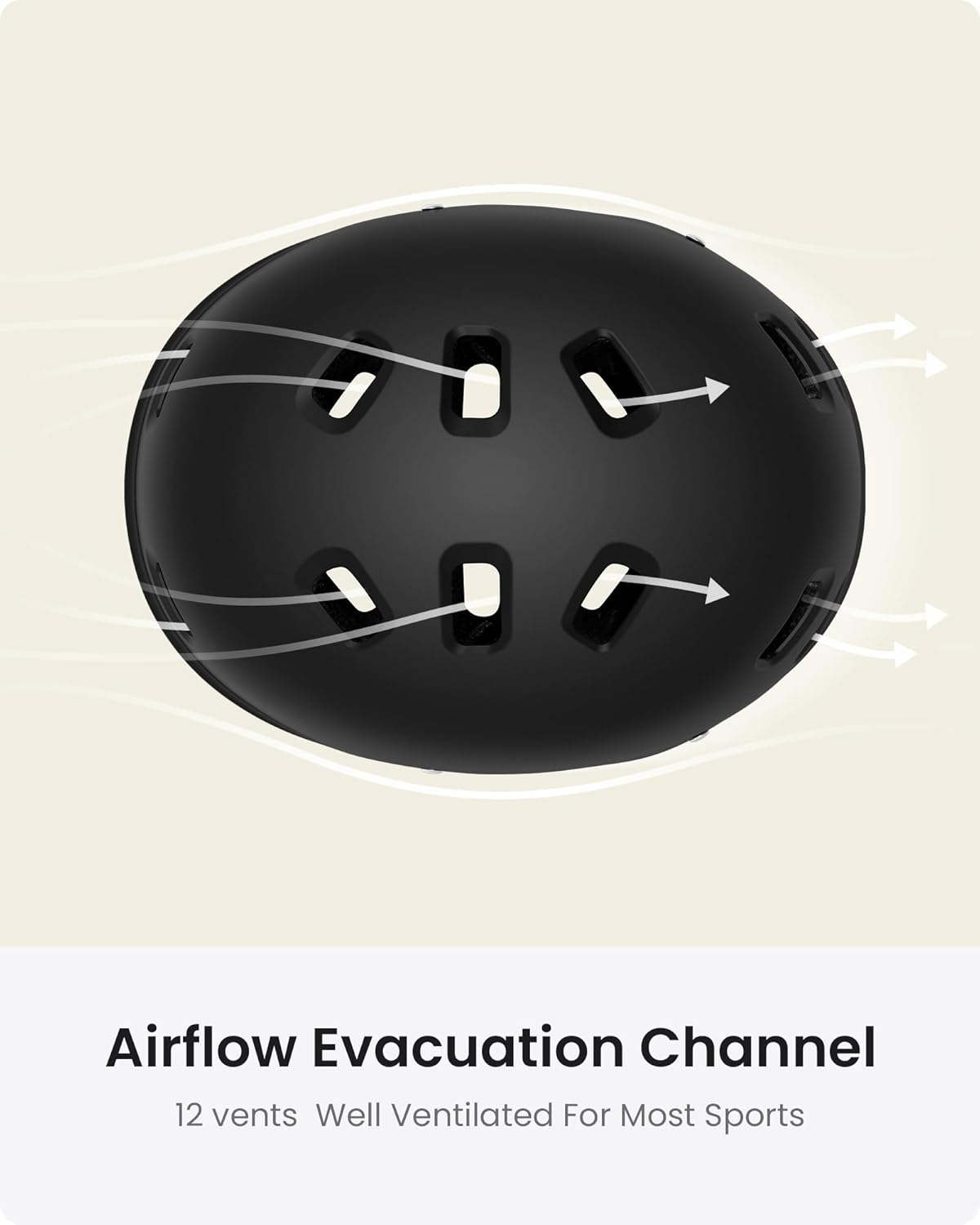 About this itemnDurable: Built for both comfort and impact resistance with reinforced ABS shell & thickened shock-absorbing EPS corenExtra Removable Lining: Skateboard helmet with two removable liner for different head sizes and easy to wash the sweat awaynA Helmet for Multi-Sport: Smooth Ventilation System helps to protect and enjoy skating, cycling, BMX, MTB and etcnDouble Adjustment: Well-attached & long-lasting adjustment dial and skin-friendly adjustable chin strap maximize the best fit and comfortable wearingnHow to Measure A Proper Helmet: To find the right size bike helmet, start by measuring your head circumference, wrap a flexible tape measure around the largest portion of your head about one inch above your eyebrows. Or, wrap a string around your head, then measure the length of string with a yardstick. Size Large is recommended if your size is between 21.3-22.8 inch (54 cm-58 cm). The recommended Age Grading: 5 Years and Older