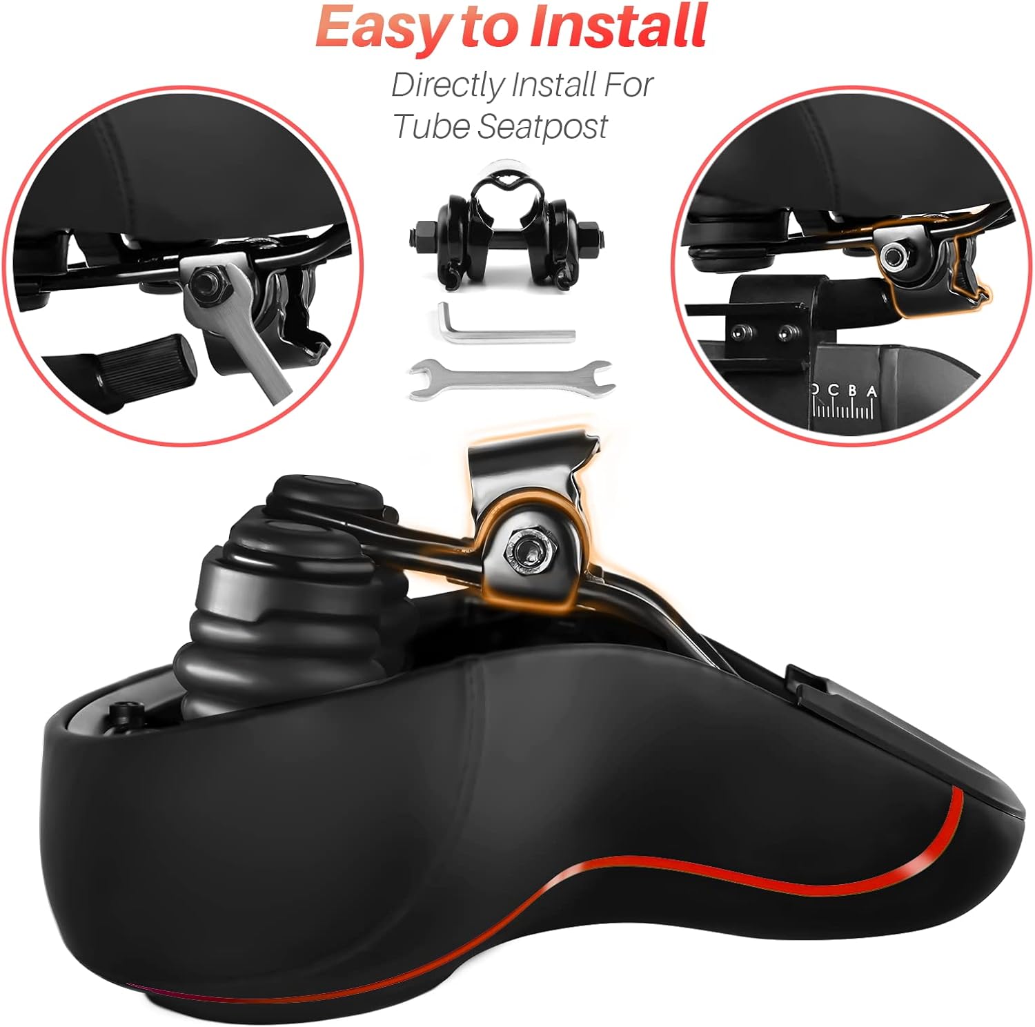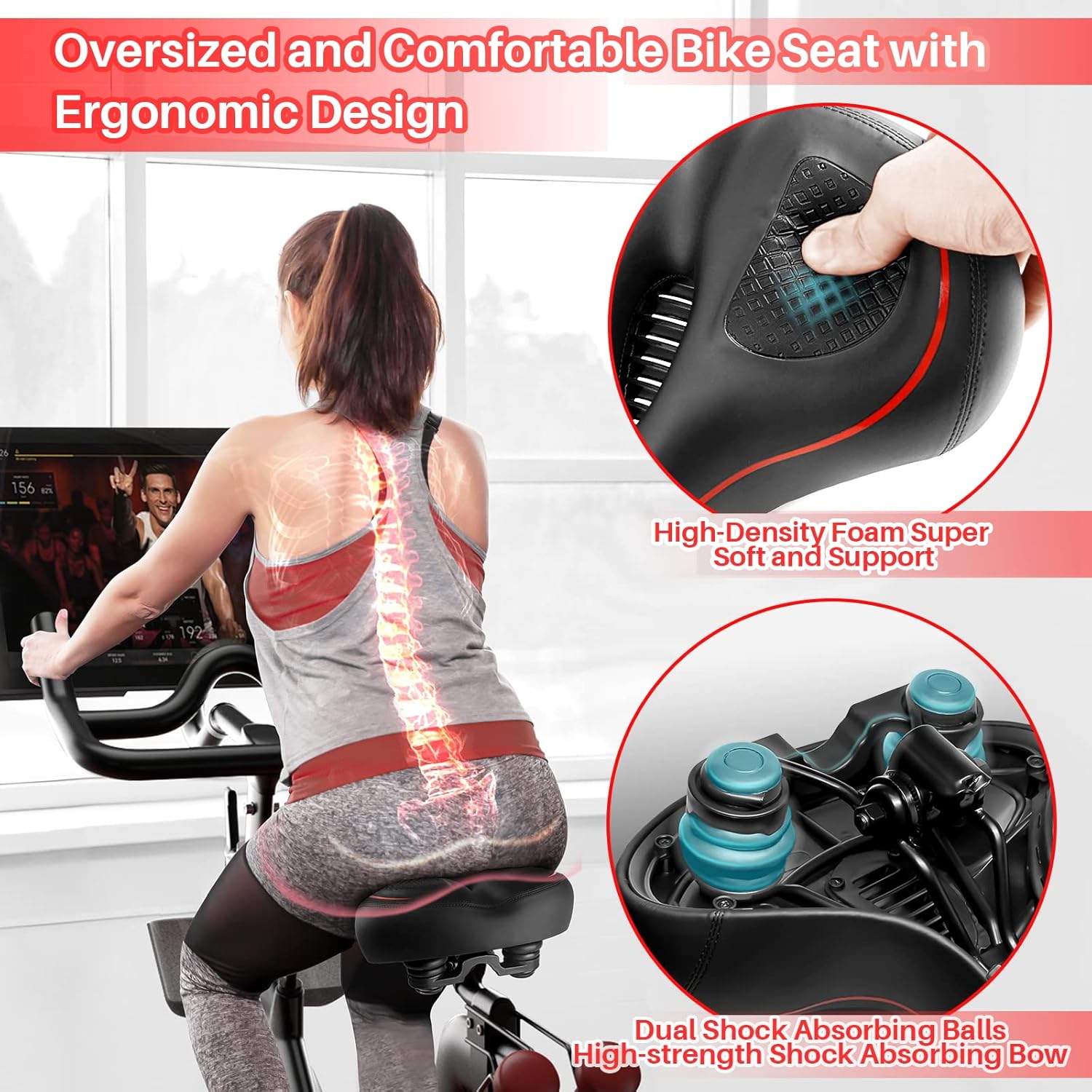 About this itemnExclusive Design: Comfort bike seat cushion compatible with Peloton, electric bikes, road or exercise bikes. Padded seat for Peloton bike With perfect compatibility and Practicality, The bicycle saddle replacement is designed with non-slip and breathable texture to make your Indoor stationary exercise bike ride more easy and comfortablenOversized and Comfortable Bike Seat: The oversized breathable seat is in close contact with your buttocks and legs, Rejecting the harm caused by the rigid and narrow original seat cushion. This bicycle saddle is made with high density foam and elastomer spring suspension, So that you can enjoy a better bike coursenBreathable and Soft: Perfectly stitched with PU leather edges, allowing you to experience the ultimate comfortable ride. The waterproof design can prevent the bicycle saddle from getting wet in the rain and prevent the seat cushion from being eroded by sweat during riding. The vent design of the middle groove ensures enough exhaust and ventilation when riding, Keeping you cool during the ridenEnjoy the Ultimate Comfortable Riding Experience: The bike seat is ergonomically designed with a perfectly curved profile and ventilation holes that will greatly improve the comfort of the saddle and the perfect fit between the seat and the body. Create a more comfortable bike ride for younEasy to Install: Installation manual is included in the package (please watch the installation video before installation), Your satisfaction is our top priority. If you have any problems with it or questions, Please don’t hesitate to contact us and we will solve it for you as soon as possible