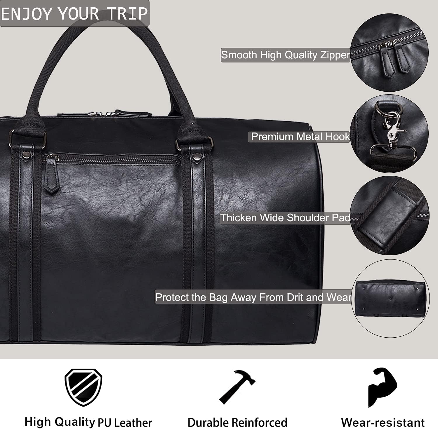 Oversized Duffle Travel Bag Waterproof Leather Weekend Bag Large Carry On Large Carry On Hangbag for Mens or Women