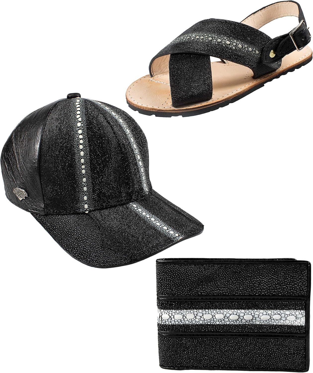 Package Exotic Genuine Stingray Leather Huarache,Wallet and Cap Color Black
