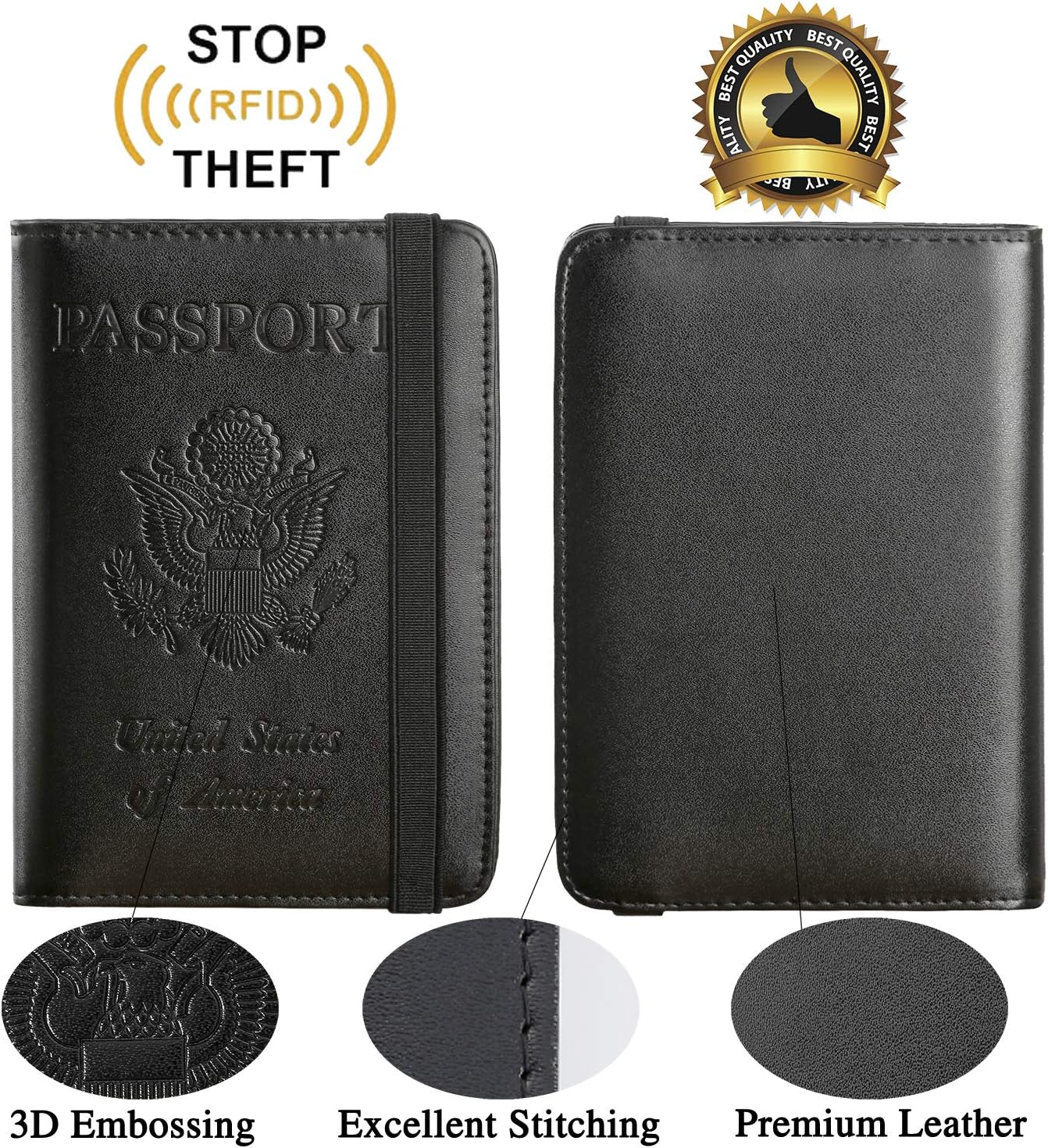 About this itemn?CLASSIC VERSION / HIGH-QUALITY? – We are a team of 28 experienced craftsmen with more than 10 years’ experience in handmade wallet industry. We strive for the highest standards. Every passport holder is rigorously examined before it leaves the factory. If our passport wallet doesn’t meet the highest standards then we don’t sell it.n?TRAVEL MUST HAVES? – The travel wallet is great holder for travel essentials. Yet with the multi-function elastic, you may put the passport wallet in a pocket, clip it in hand or the pull rod of the suitcase and know that it is safe.n?RFID BLOCKING? – Passport cover with inside RFID blocking shield material helps prevent personal account information disclosure.n?HIGH-QUALITY SYNTHETIC LEATHER? – The passport holder is designed specially for passport. Passport cover made from premium high-quality ECO-Friendly synthetic leather, touch soft and comfortably base on more sponge added.n?GIFT? – Every passport case is equipped with a metal pin, which is used to push the dot to open the slot on iPhone or other mobile phones to change SIM card when you travel internationally.