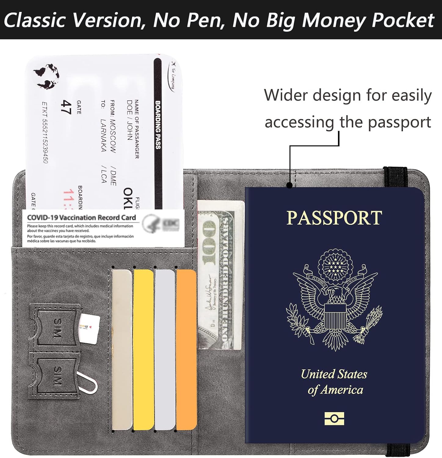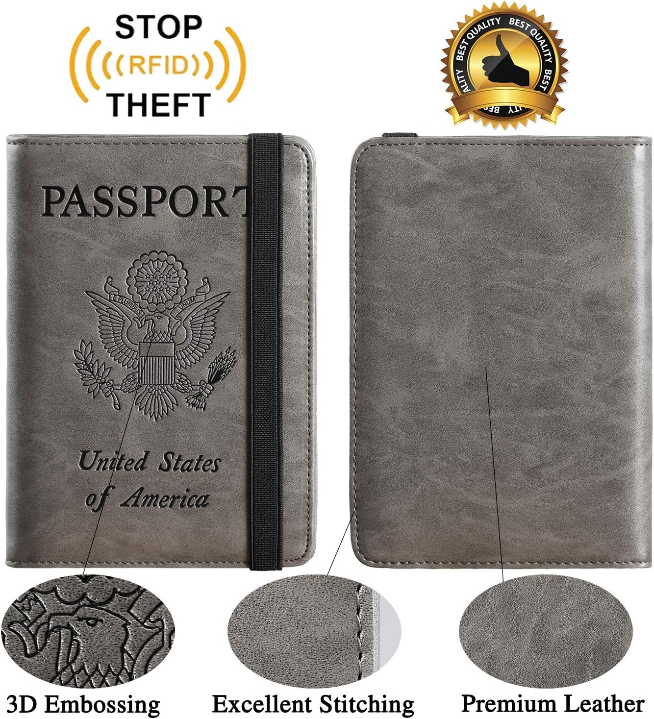 About this itemn?CLASSIC VERSION / HIGH-QUALITY? – We are a team of 28 experienced craftsmen with more than 10 years’ experience in handmade wallet industry. We strive for the highest standards. Every passport holder is rigorously examined before it leaves the factory. If our passport wallet doesn’t meet the highest standards then we don’t sell it.n?TRAVEL MUST HAVES? – The travel wallet is great holder for travel essentials. Yet with the multi-function elastic, you may put the passport wallet in a pocket, clip it in hand or the pull rod of the suitcase and know that it is safe.n?RFID BLOCKING? – Passport cover with inside RFID blocking shield material helps prevent personal account information disclosure.n?HIGH-QUALITY SYNTHETIC LEATHER? – The passport holder is designed specially for passport. Passport cover made from premium high-quality ECO-Friendly synthetic leather, touch soft and comfortably base on more sponge added.n?GIFT? – Every passport case is equipped with a metal pin, which is used to push the dot to open the slot on iPhone or other mobile phones to change SIM card when you travel internationally.