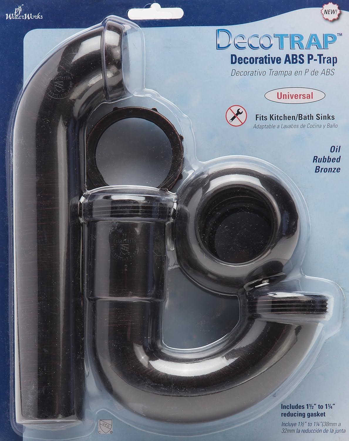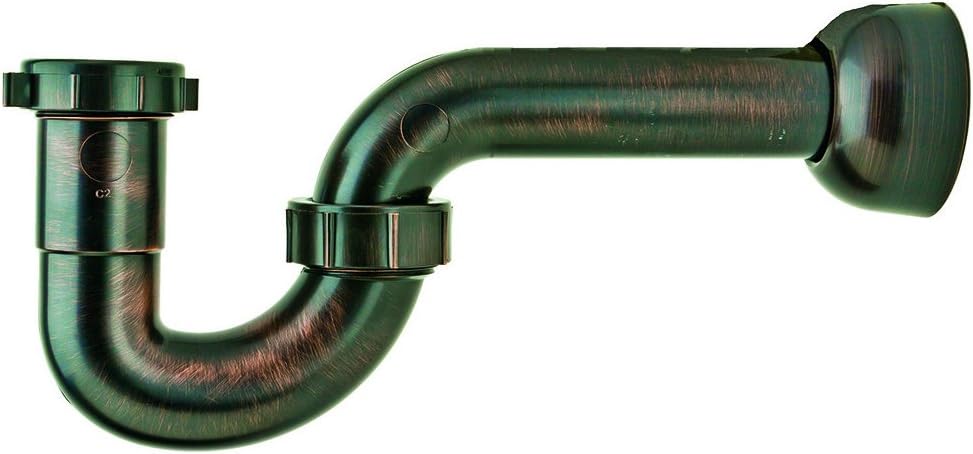 PF WaterWorks DecoTRAP Decorative ABS P-Trap (Kitchen/Bathroom) with Matching Wall Adaptor Cover – Universal (1-1/2-Inch or 1-1/4-Inch x 1-1/2-Inch); Oil Rubbed Bronze; PF0703-ORB