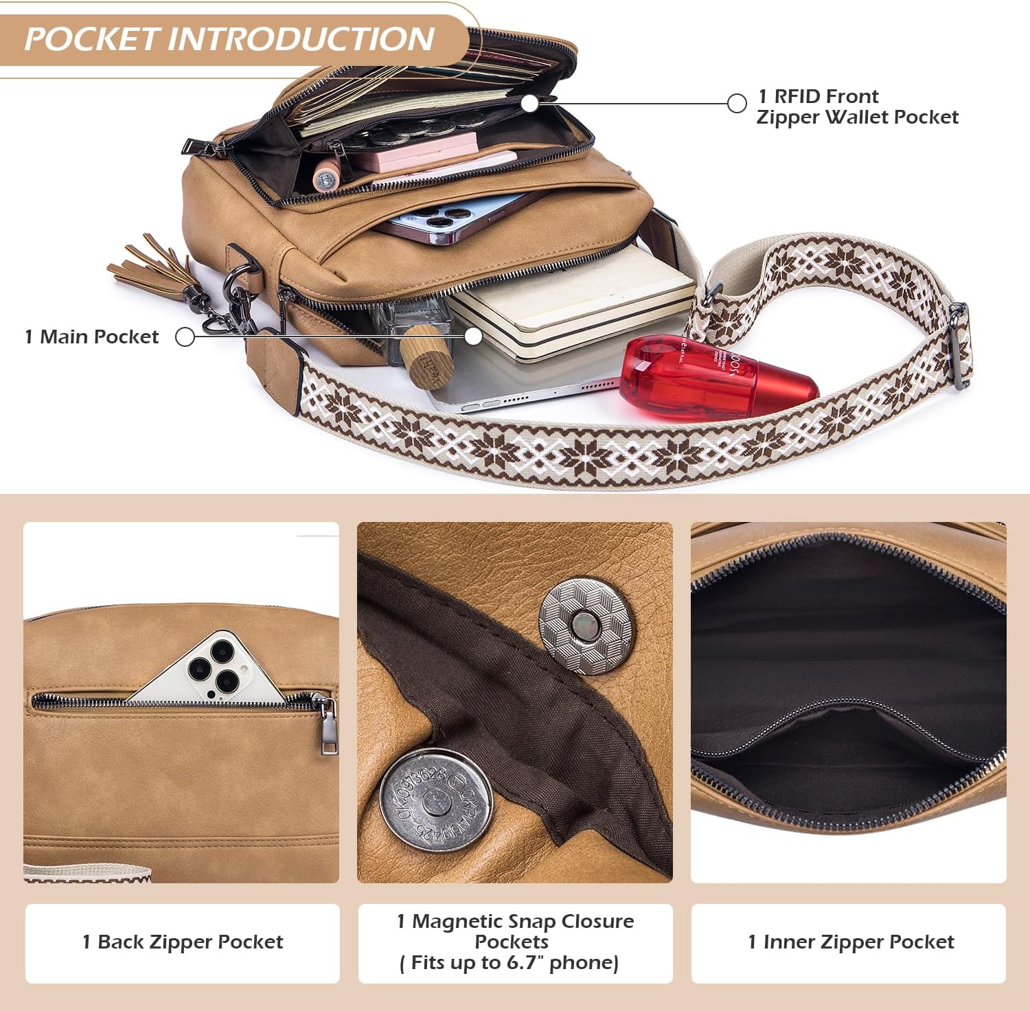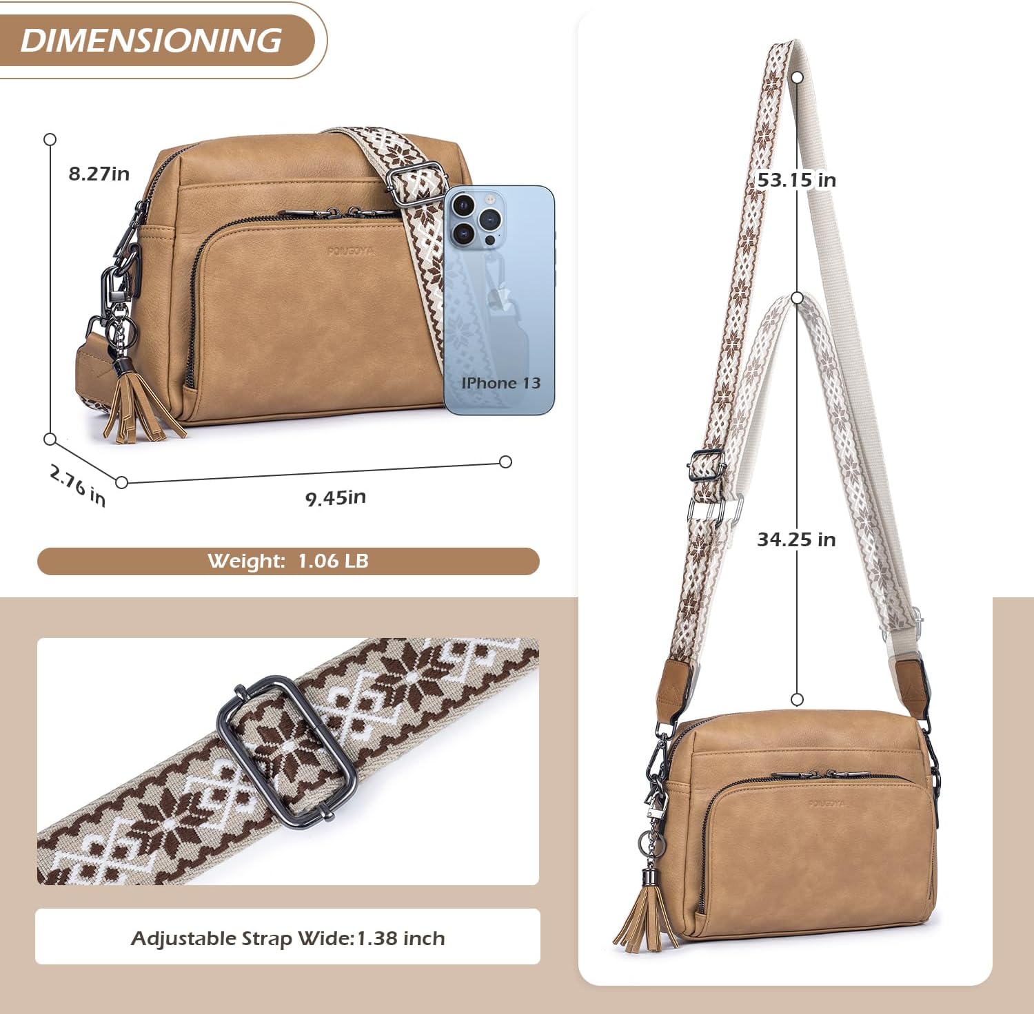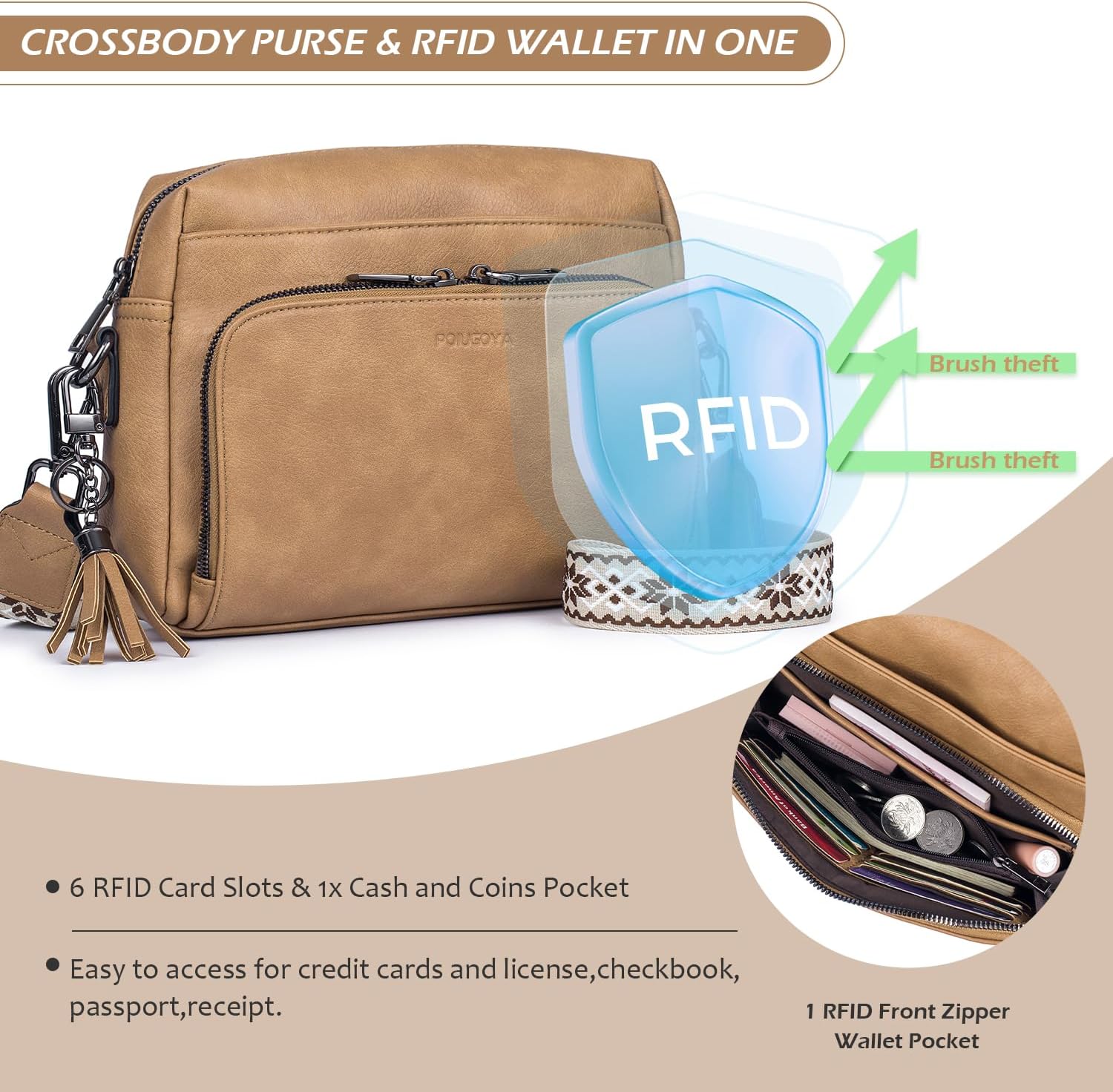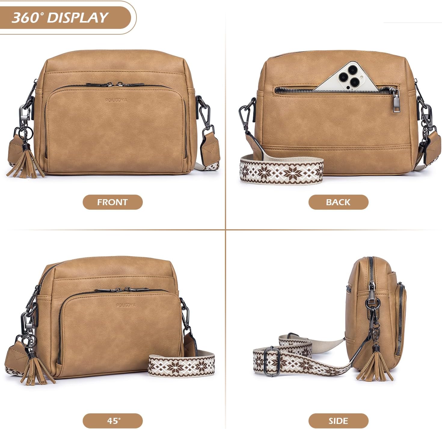 POIUGOYA Crossbody Purses for Women Trendy,Vegan Leather Medium Crossbody Bag,Women’s Crossbody Travel Purse Built in Wallet