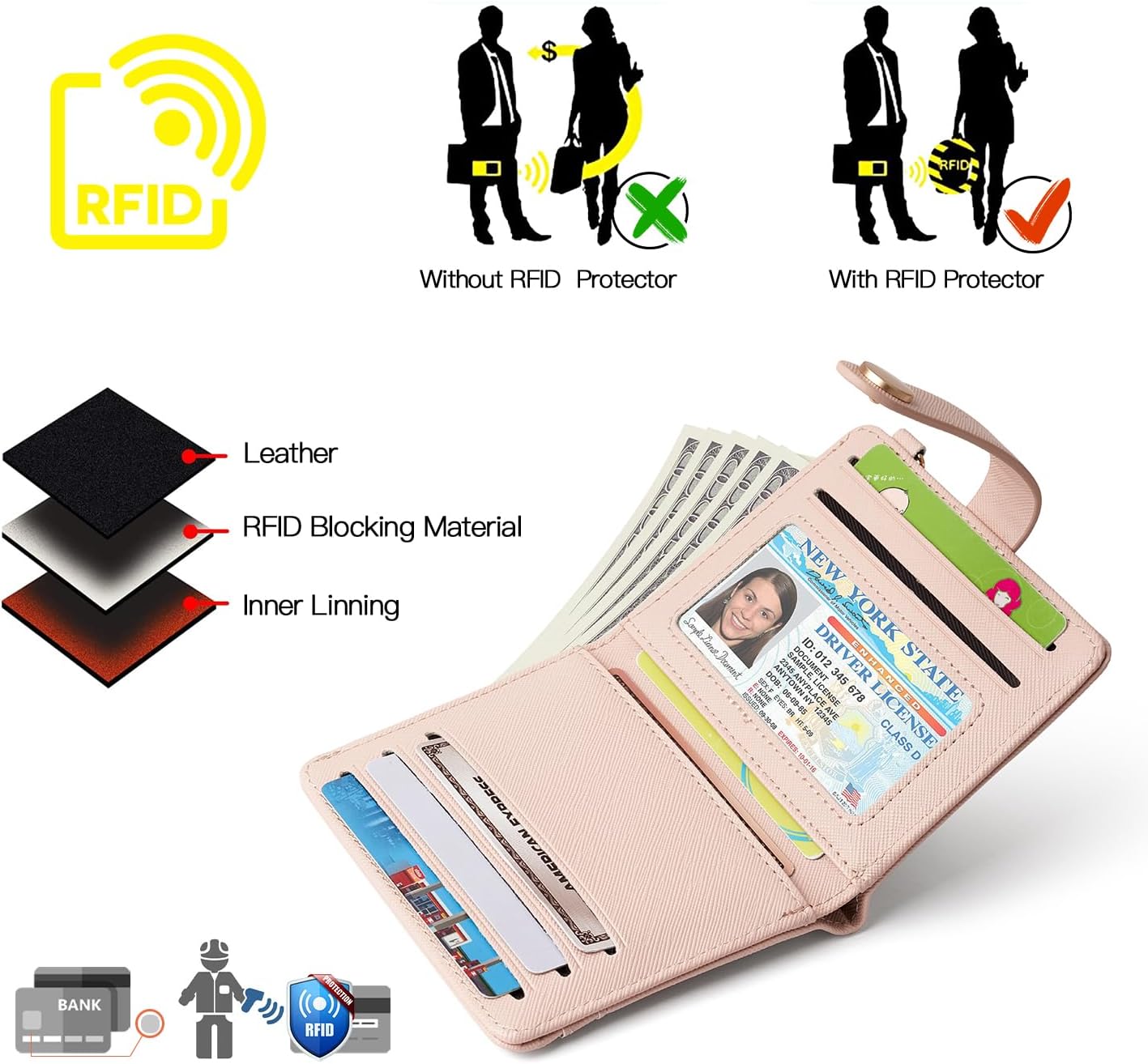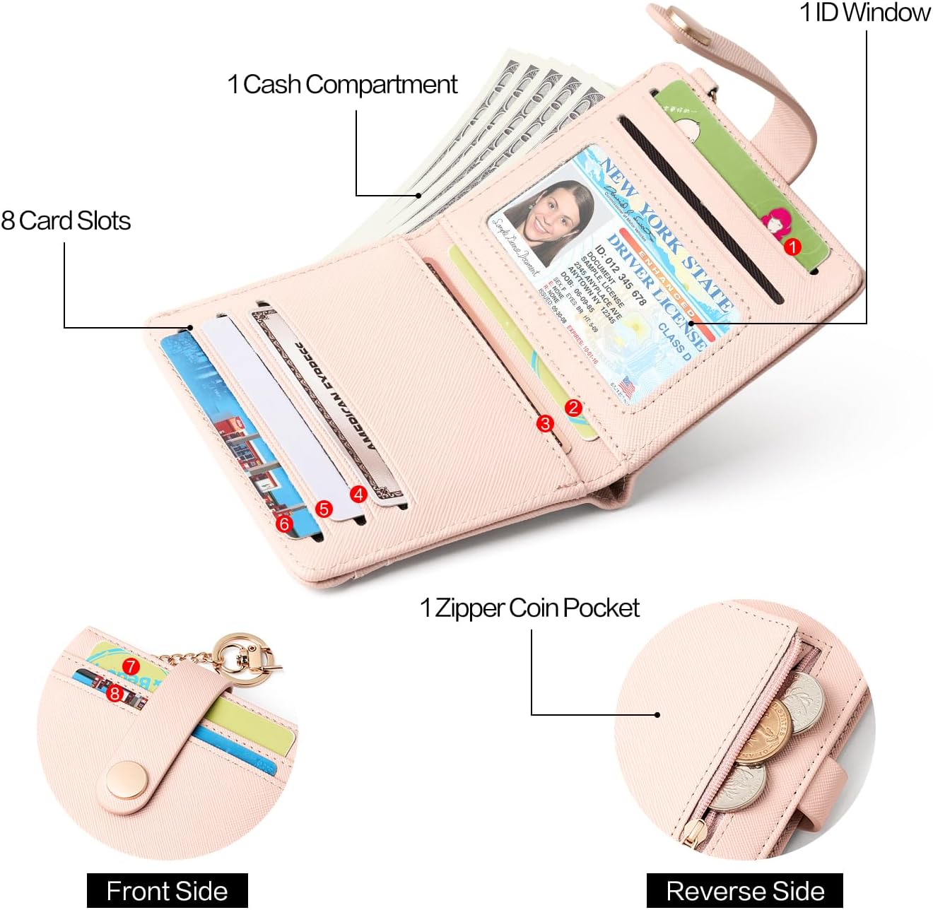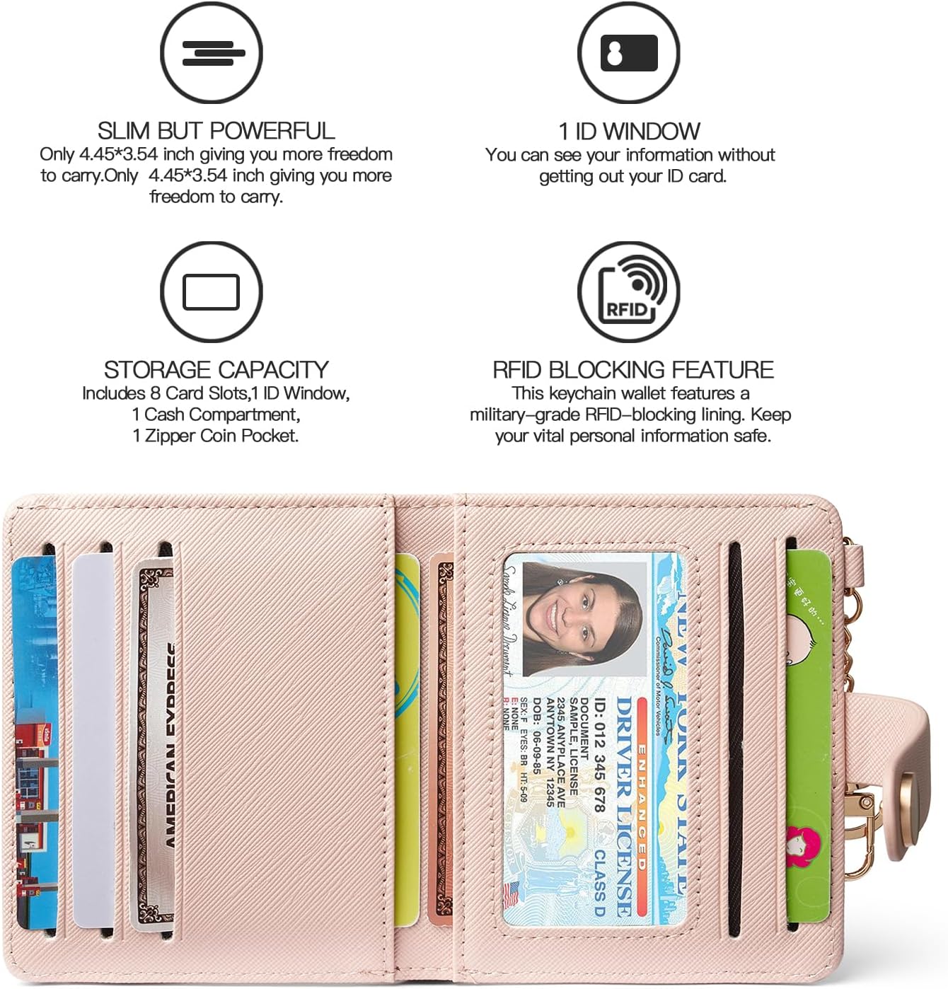 POIUGOYA Slim Wallet for Women,RFID Blocking Bifold Credit Card Holder with Zipper Coin Pocket,ID Window,Keychain