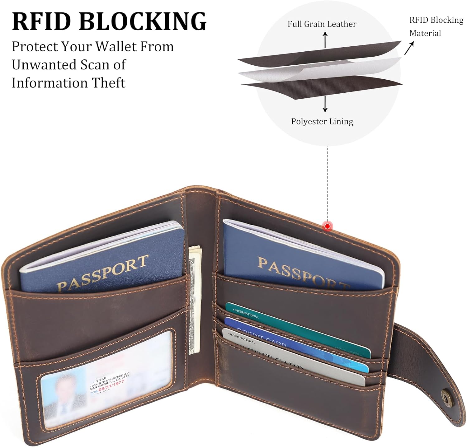 About this itemnReal Leather Craftsmanship: Each mens wallet is made from luxury full grain leather, making it both handsome and reliable for long-term use. Has a smooth, soft and luxurious feeling in your hand.nDimensions: 4.3(L)*5.7(H) inches /11(L)*14.5(H) cm. Item weight: 0.22lb/0.1kg. Designed with a built-in AirTag holder to keeps your AirTag securely in place (AirTag Not Included). Put your AirTag into the snap AirTag slot and never lose your wallet again, providing added security and convenience during your travelsnRFID Travel Protection: Along with a premium texture, these RFID blocking wallets can perfectly block unwanted RFID scanners, keep chip cards, personal and financial information safe from unauthorized scans. It is secure and is good for travel RFID Credit Card HoldernSlim and Functional Design: 3 Card Slots, 2 Passports, 2 Cash Pockets, 1 ID Display Window. Slim and nice looking. Fashion thin design make wallet holder looks more elegant and vintage. This little wallet can holds everything you need! It makes the life easiernBuy with Certainty: Comes with a one year Warranty and Lifetime customer service! Your satisfaction is our pursuit, we stand behind our products and every customer’s great shopping experience with Polare, so you can buy with peace of mind