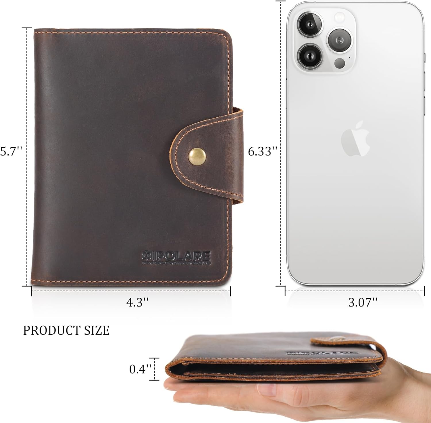 About this itemnReal Leather Craftsmanship: Each men’s wallet is made from luxury full-grain leather, making it both handsome and reliable for long-term use. Has a smooth, soft and luxurious feeling in your handnDimensions: 4.3(L)*5.7(H) inches /11(L)*14.5(H) cm. Item weight: 0.22lb/0.1kgnRFID Travel Protection: Along with a premium texture, these RFID blocking wallets can perfectly block unwanted RFID scanners, keep “chip” cards, personal and financial information safe from unauthorized scans. It is secure and is good for travel RFID Credit Card HoldernSlim and Functional Design: 3 Card Slots, 2 Passports, 2 Cash Pockets, 1 ID Display Window. Slim and nice looking. Fashion thin design make wallet holder looks more elegant and vintage. This little wallet can holds everything you need! It makes the life easiernBuy with Certainty: Comes with a one year Warranty and Lifetime customer service! Your satisfaction is our pursuit, we stand behind our products and every customer’s great shopping experience with Polare, so you can buy with peace of mind