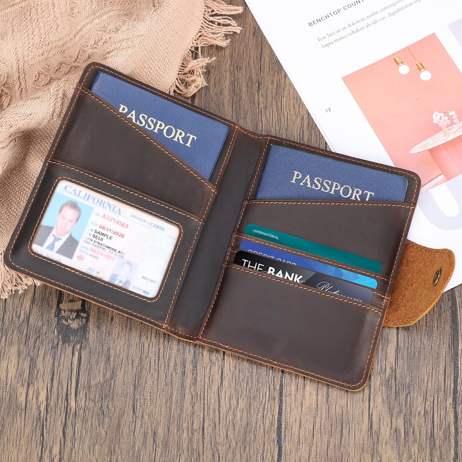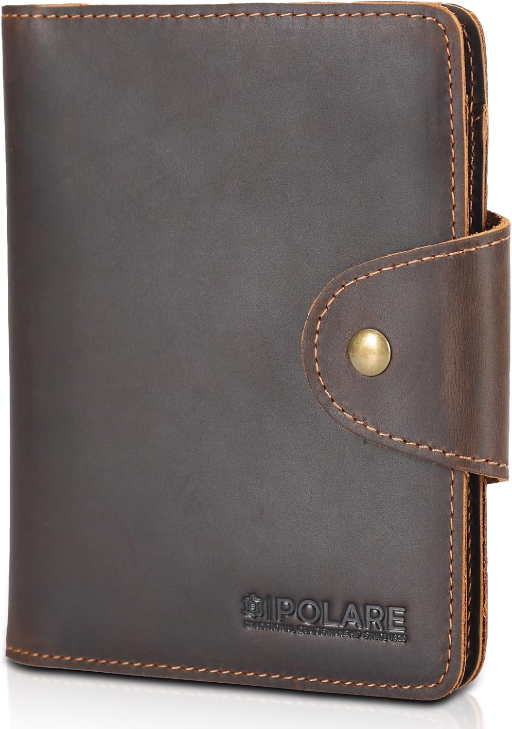 Polare Full Grain Leather Slim and Soft RFID Blocking wallet For Men Snap Bifold Travel Wallet Passport Holders 2 Passports (Dark Brown)