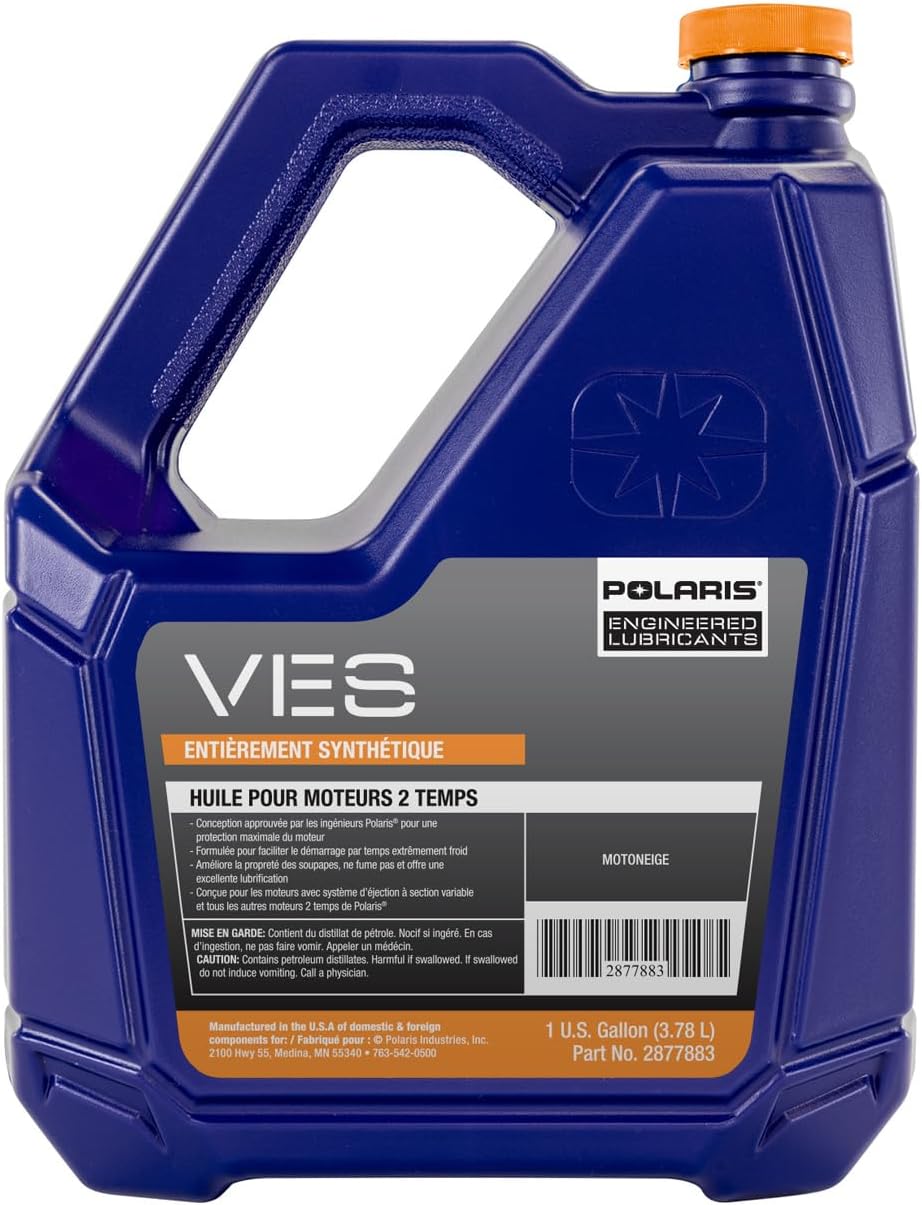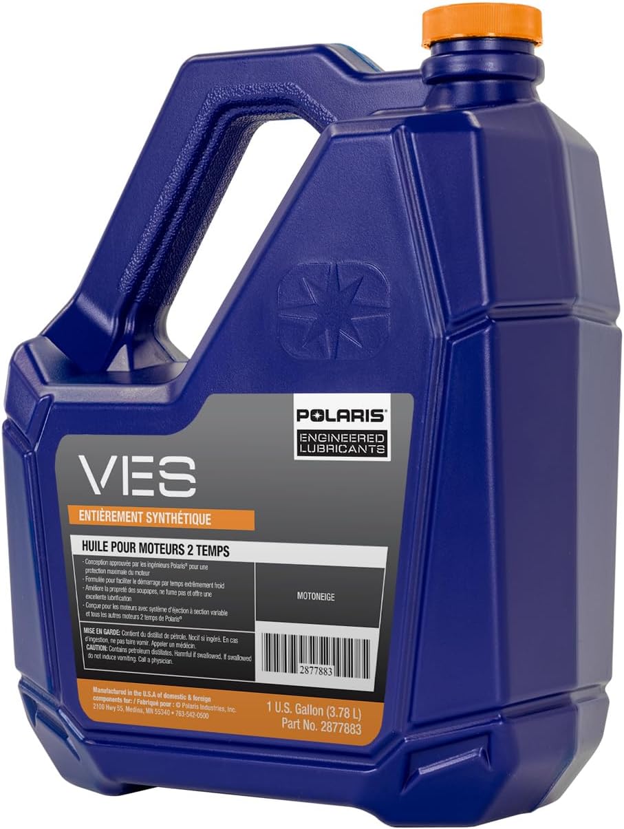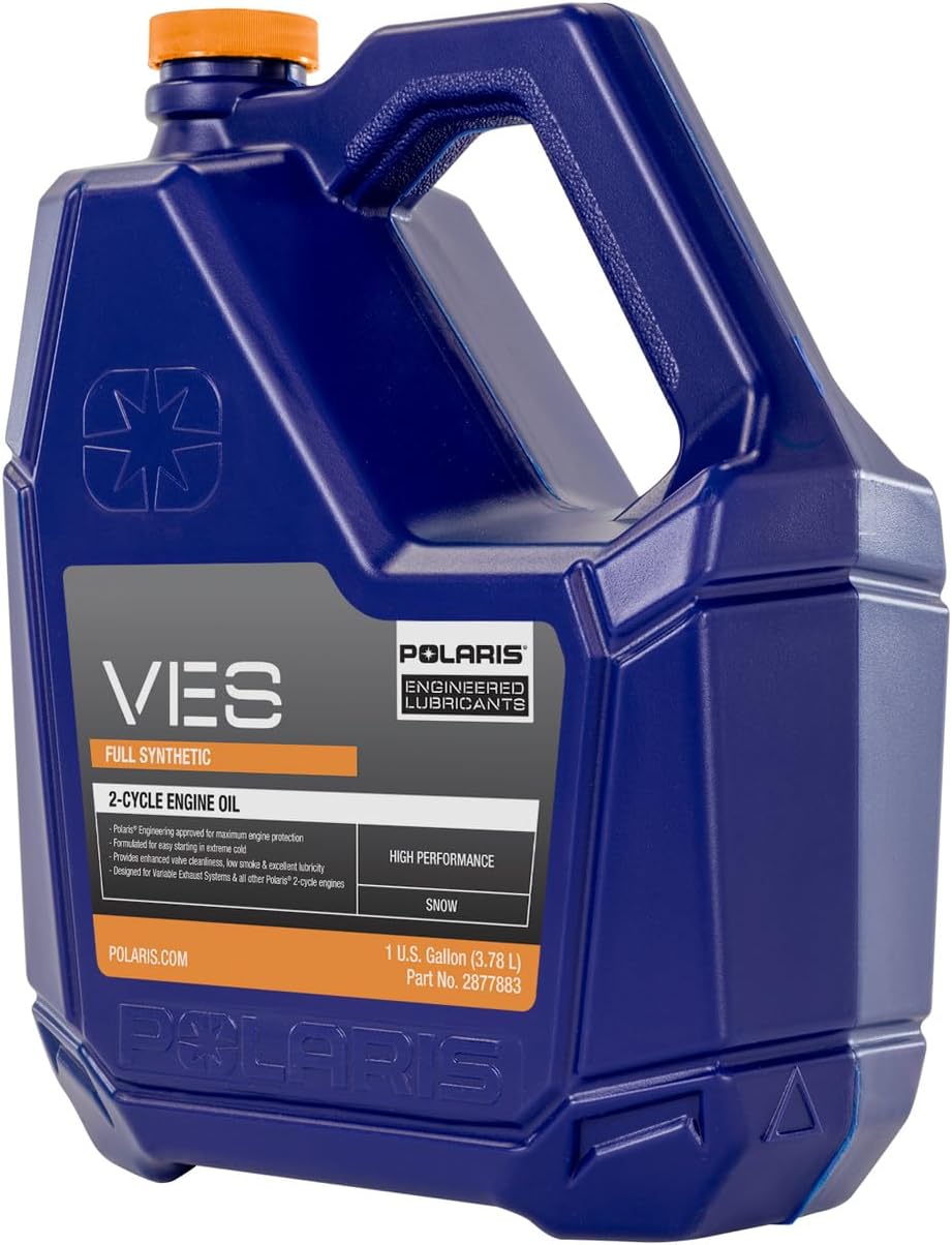About this itemnFull Synthetic Formula: Polaris VES Full Synthetic Oil uses a powersports-grade synthetic base oil that delivers enhanced performance and engine protection for Polaris 2-cycle snowmobile engines.nCustom Additive System: Proprietary anti-wear and detergency additives protect engine components and burn clean with less carbon deposits and buildup on critical engine components such as pistons, rings and exhaust valves.nEnhanced Protection: Additives prevent rust, provide excellent corrosion protection of internal engine parts, and minimize the negative effects of ethanol blended fuels and moisture during off-season storage for maximum engine life.nEnhanced Performance: Enhanced cold flow properties provide instant lubrication and cold start protection even in subzero temps. It even keeps the engine lubricated after shutting down, retaining a protective oil film on hot internal engine parts.nApplications: Approved for use in all Polaris Switchback, INDY, RMK, Voyageur, TITAN and RUSH non-turbo 2-cycle pre-mix, fan-cooled and non-boost liquid-cooled snowmobile engines.n See more product details