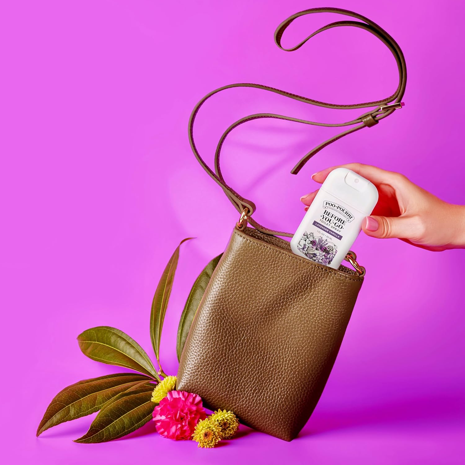 About this itemnPoo-Pourri Before-You-Go Toilet Spray – Now in a NEW pocket sprayer travel sized bottle that leaves your bathroom smelling fresh and clean. Simply spray the water in the bowl with Poo-Pourri Toilet Spray before using the toilet to prevent odors before they begin! Made with 100% natural essential oils!nScent: Original Citrus, Lavender Vanilla and Tropical Hibiscus – Our most popular scent. Now in a NEW pocket sprayer travel sized bottle! Great for traveling, and on-the-go.nHow It Works: Shake well. Spritz 3-5 sprays into the toilet bowl on the waters surface. Proceed to do your thingnSize: 1 oz bottle – up to 50 uses. Travel size friendly!nUnique essential oil formula helps your home beyond the bathroomuse it to combat strong laundry, nursery and trash bin odors too.