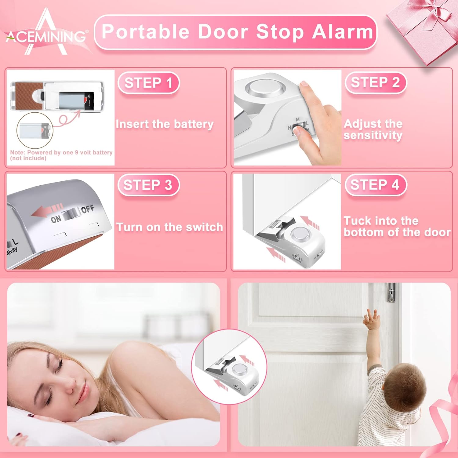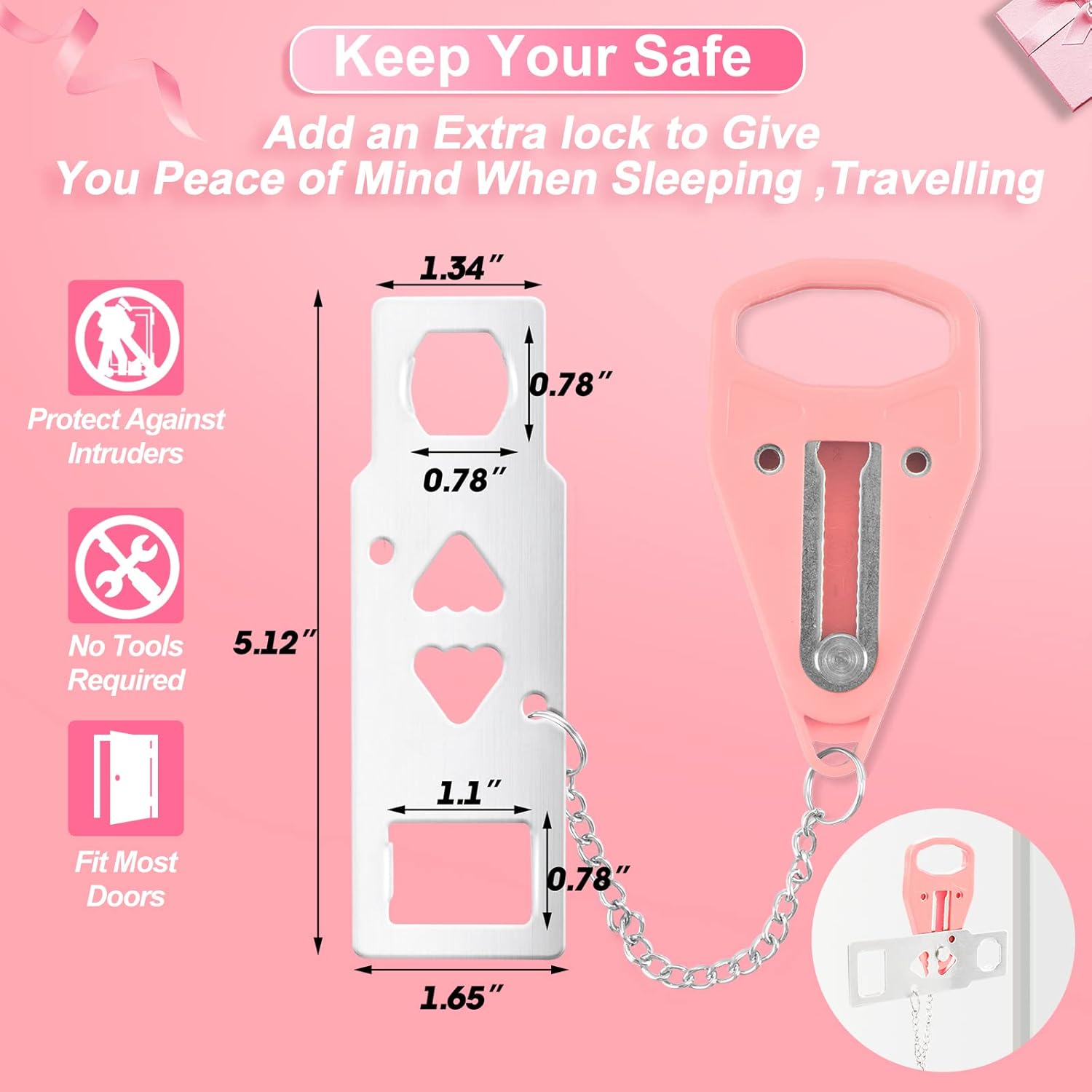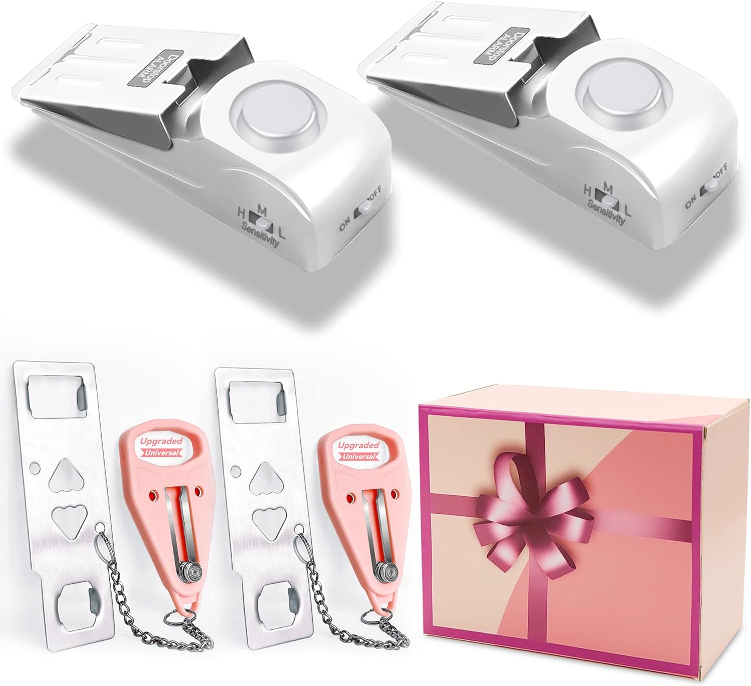 About this itemnDOUBLE PROTECTION – The package includes 2 X Portable Door Locks and 2 X Door Stop Alarm, gifts for women, two different portable security devices to give you double protection.nPortable door lock – tool-free and easy to install, womens gifts, combined with the door lock latch on the door, prevents unauthorized entry, and protects your privacy and security for your travels.nDoor Stop AlarmIt also acts on the door, best friend gifts for women, keeping the danger out of the door. At the same time, it has a 120DB alarm sound. When someone tries to enter illegally outside the door, the alarm sound is loud, reminding you to take immediate defense.nSmall and Portable – Both products have a small size that can be easily placed in your handbag, birthday gifts for women, school bag, etc. The portability makes them suitable for home, travel, hotel, apartment and more.nDelicately Wrapped Gift – The product is packaged in a delicate orange gift box, gift set for women, perfect for gifting someone you care about as an extra safe gift. Don’t forget to give them this gift on Father’s Day, Mother’s Day, Thanksgiving, Christmas and your child starts school.n See more product details