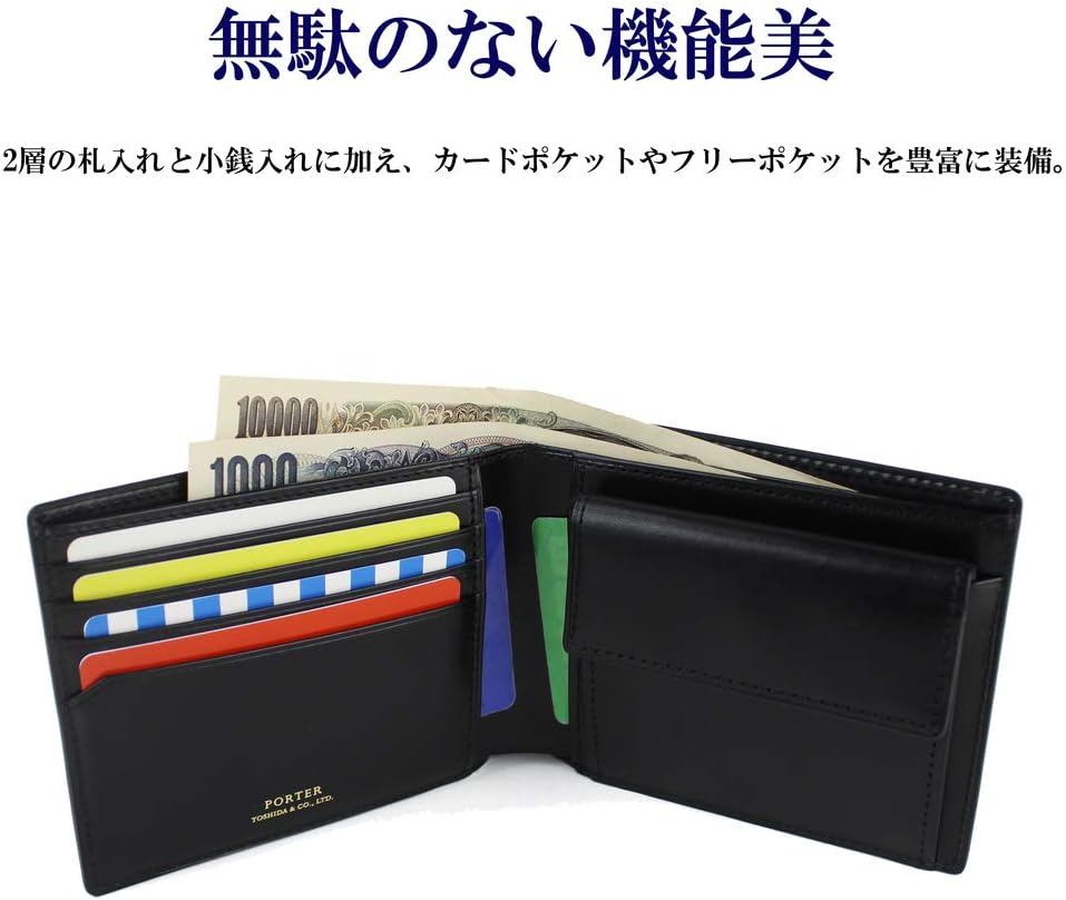 About this itemnOuter Material: Cordovan (Tannin). Lining: Cow steer (Italian imported leather, tanned)nSize (W x H x D): Approx. 4.4 x 3.5 x 1.0 inches (112 x 90 x 25 mm). *Sizes are measured by our store. There may be slight individual differences depending on the productnWeight: Approx. 3.4 oz (95 g); Country of Origin: Japann[Body Color: Metal Fitting] [Black: Gold] [Deep Blue: Silver]nInterior: Bill compartment x 2, card pocket x 6, coin purse x 1, pocket x 3; Accessories: Original storage bag x 1