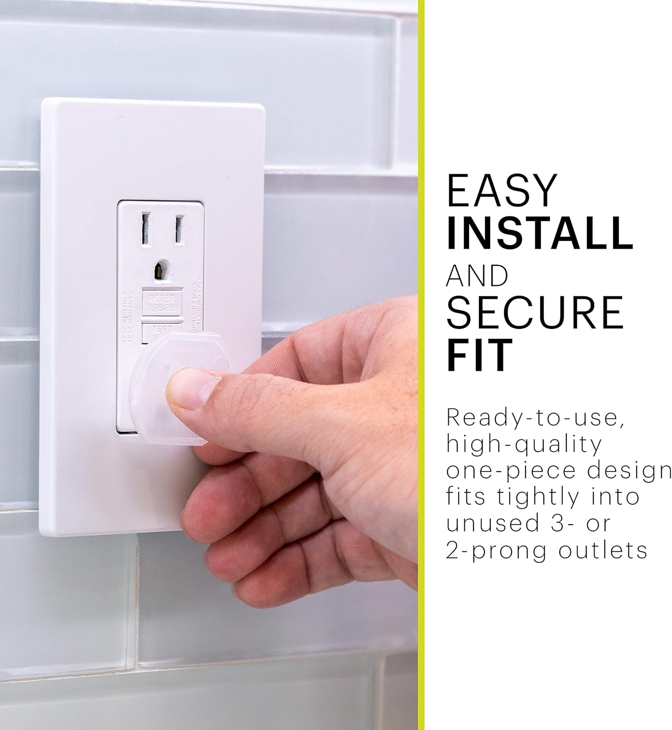 Child Safety Covers unused receptacles to help babyproof living rooms, bedrooms, kitchens and playrooms by preventing objects from being inserted into outletsnEasy Installation Clear safety covers simply plug into unused outlets and are removed by adults without toolsnSecure Fit High-quality, one-piece design fits tightly into unused three-prong or two-prong wall outlets and is difficult for infants or young children to removenMultipack Kit The set of 30 outlet covers is perfect for new home construction, renovations, offices, day cares, schools or businessesnPeace of Mind These UL-listed outlet covers come with a no-hassle, one-year limited replacement plan and are backed by the highest industry standards of safety and performancen See more product details